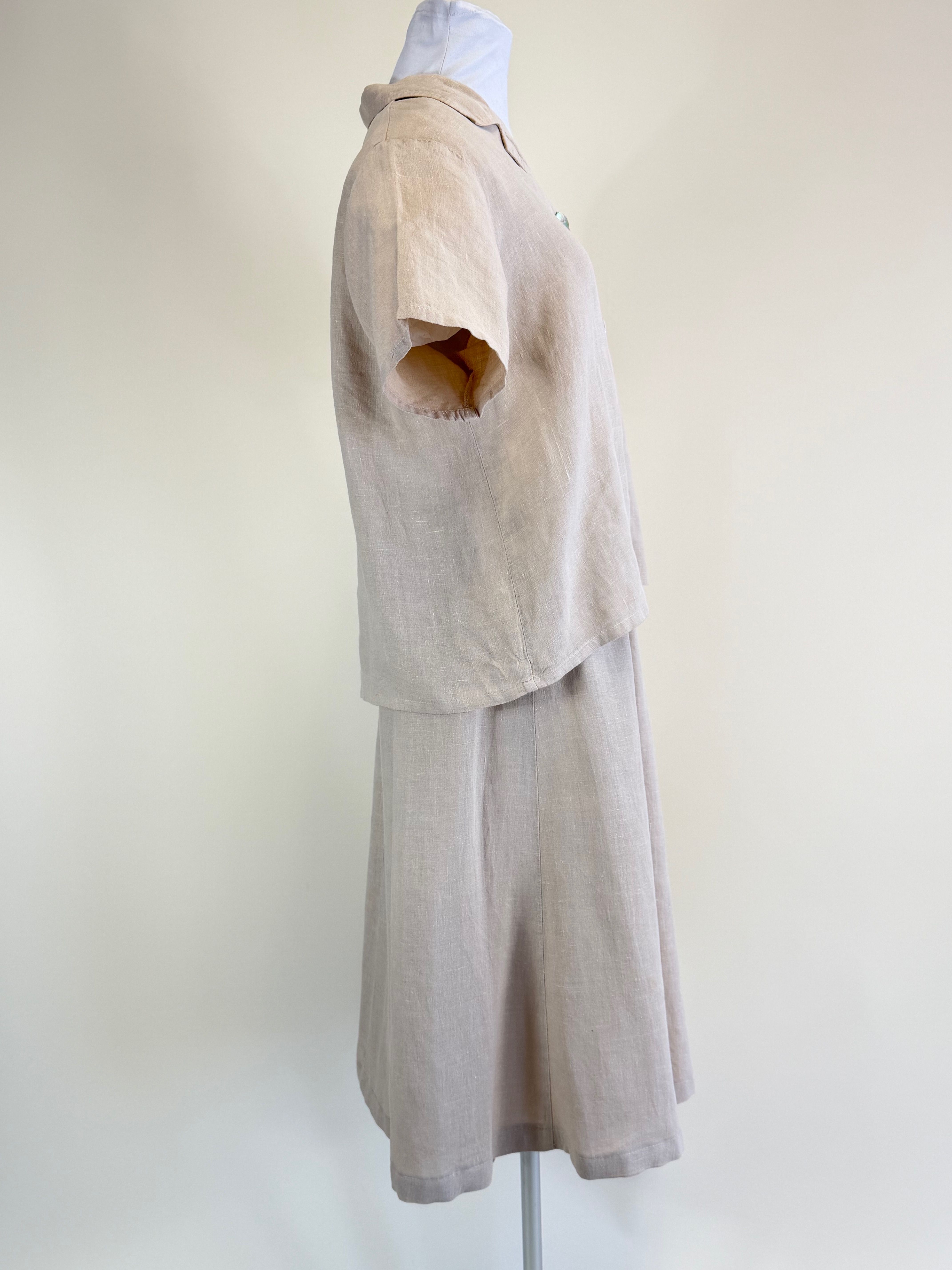 Vintage Ecru Linen 2-Piece Ensemble