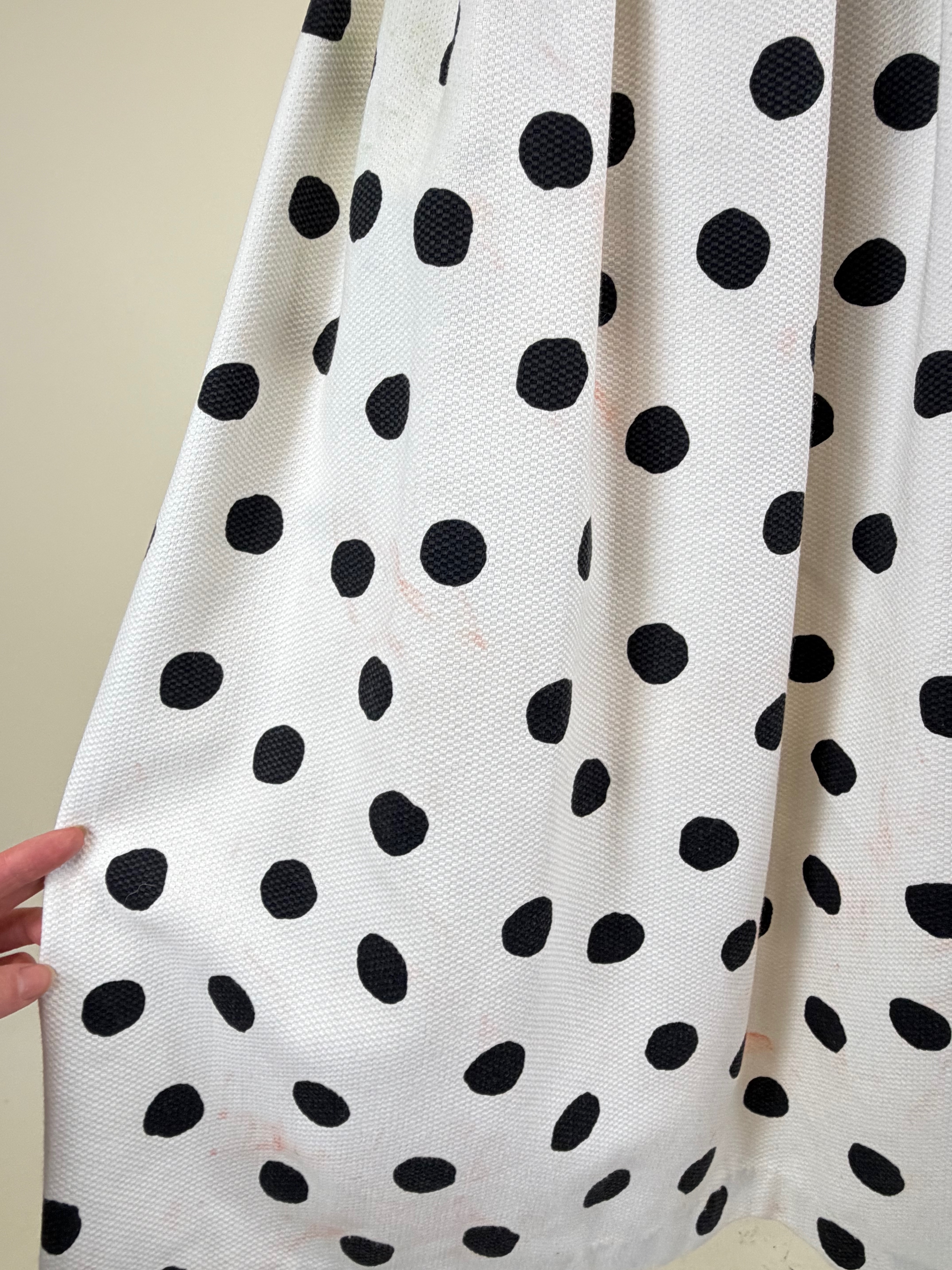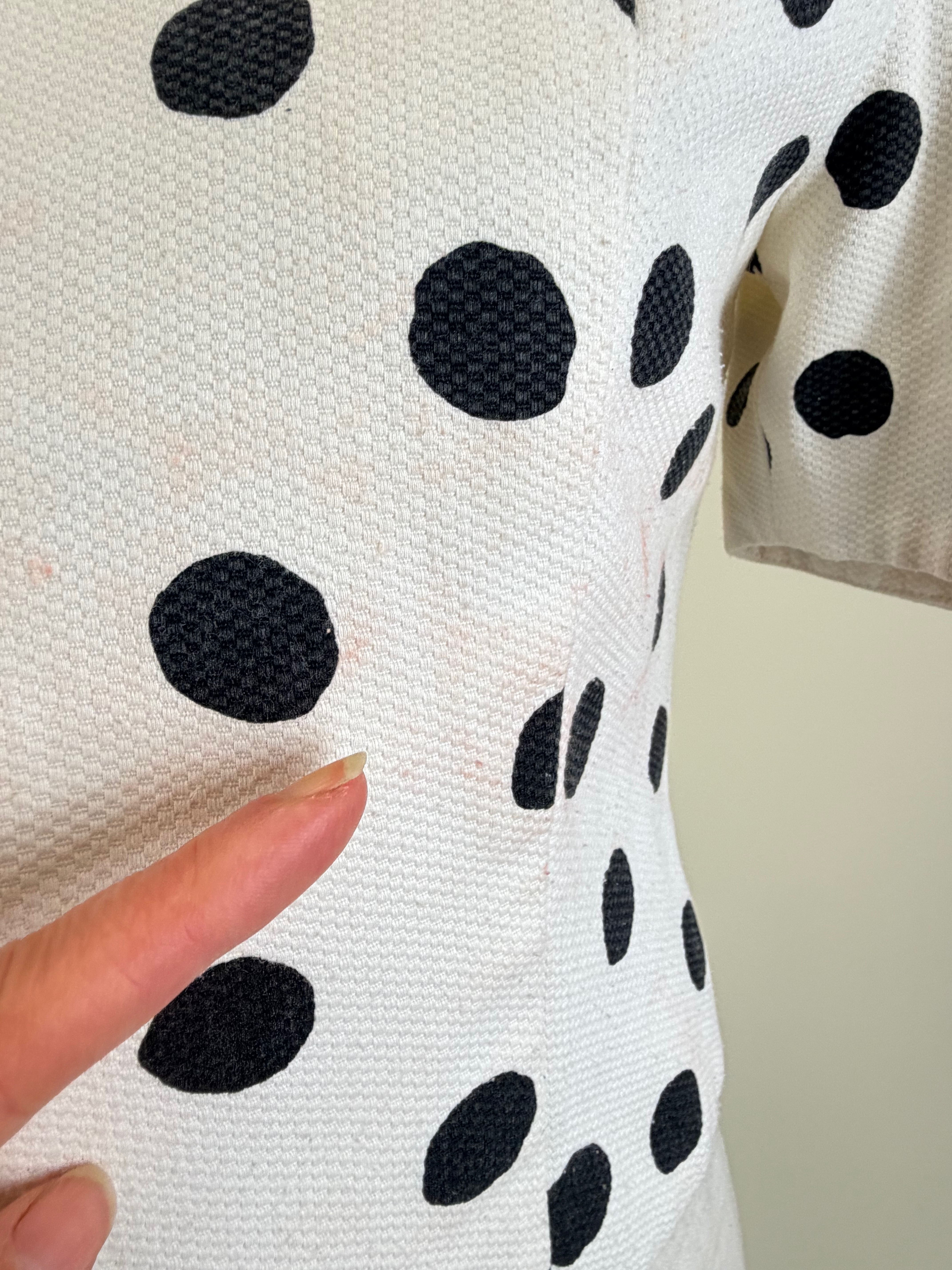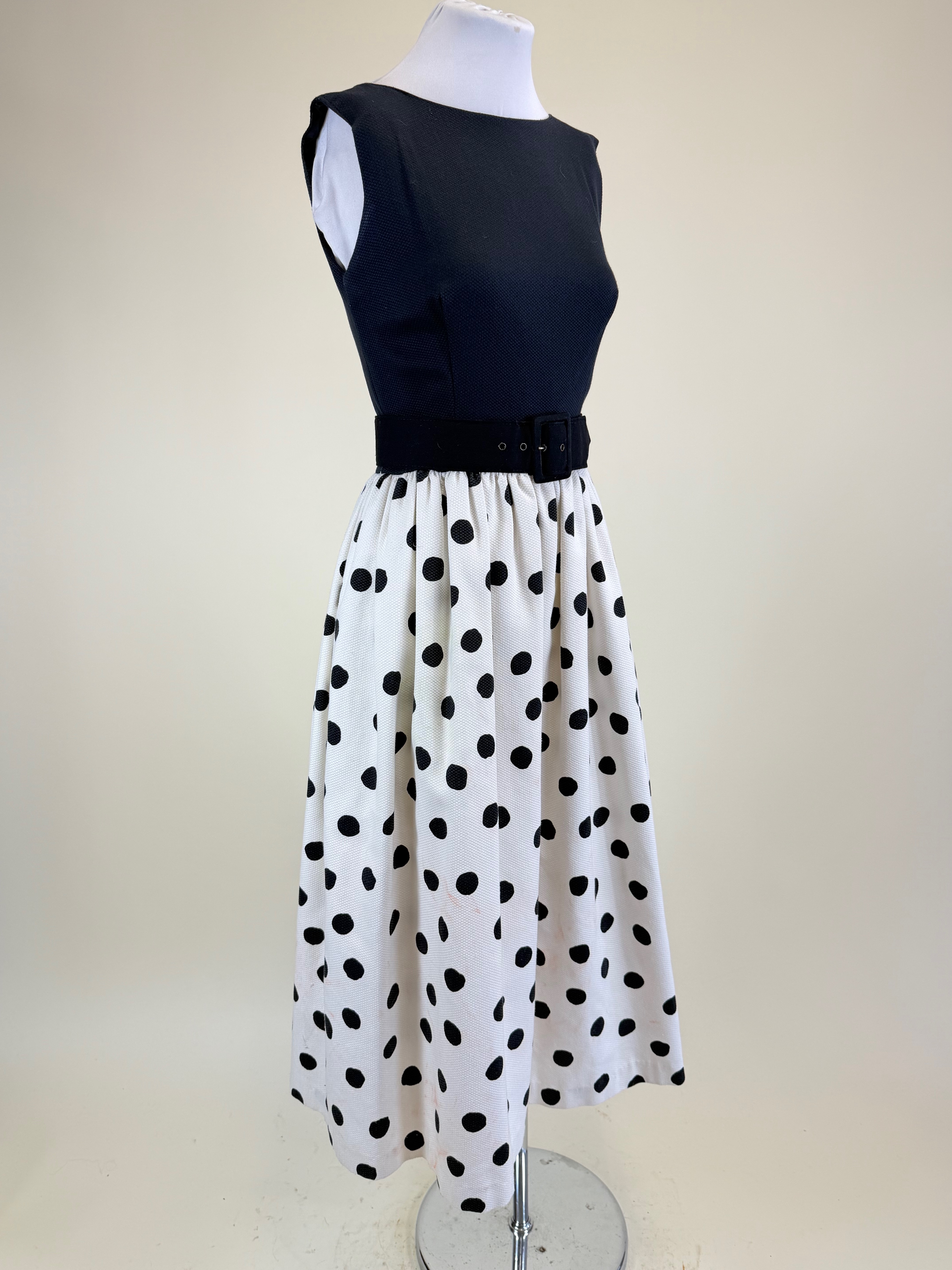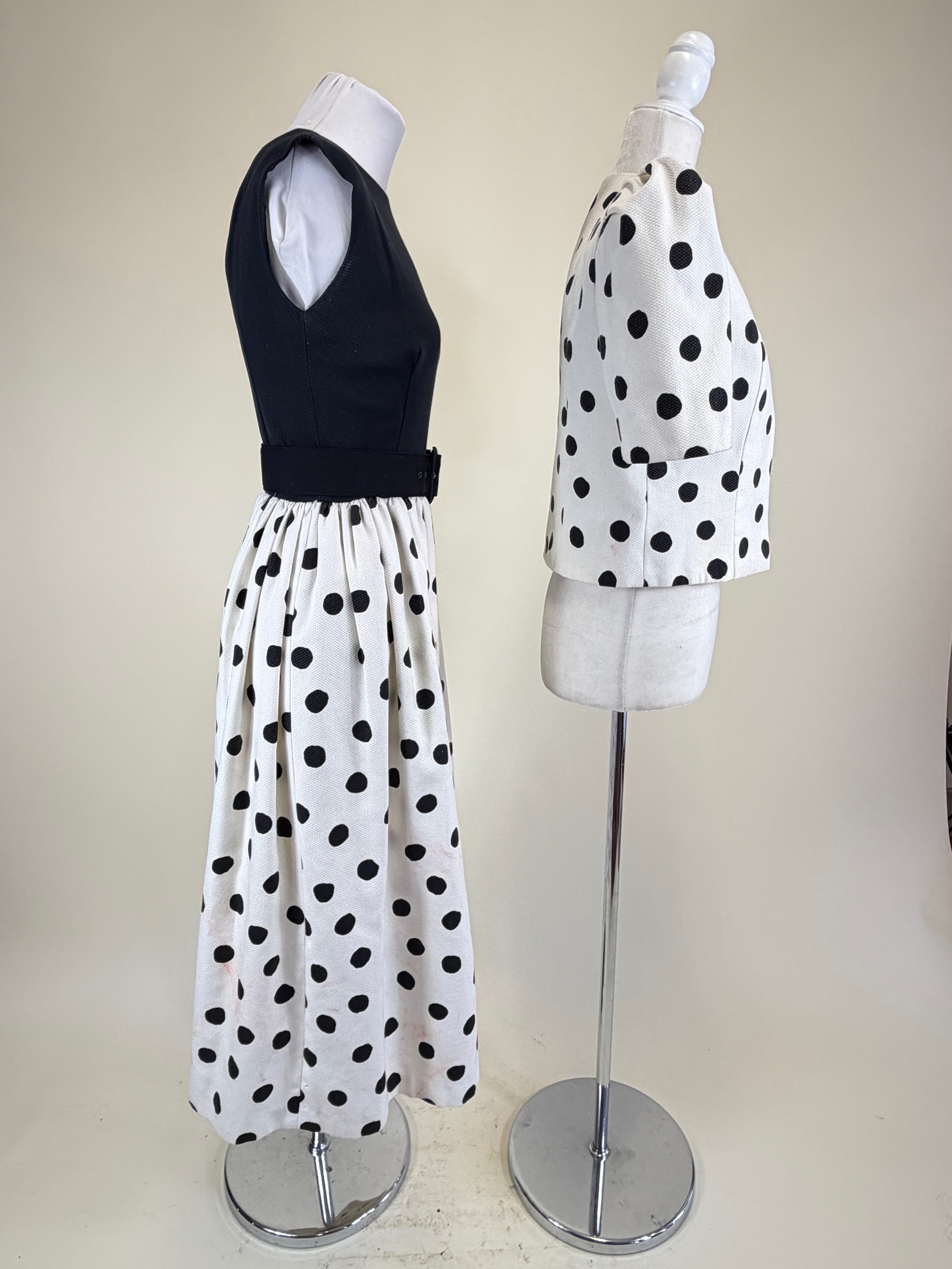 Has original jacket & belt, B 32″, W 24″, staining, see photos