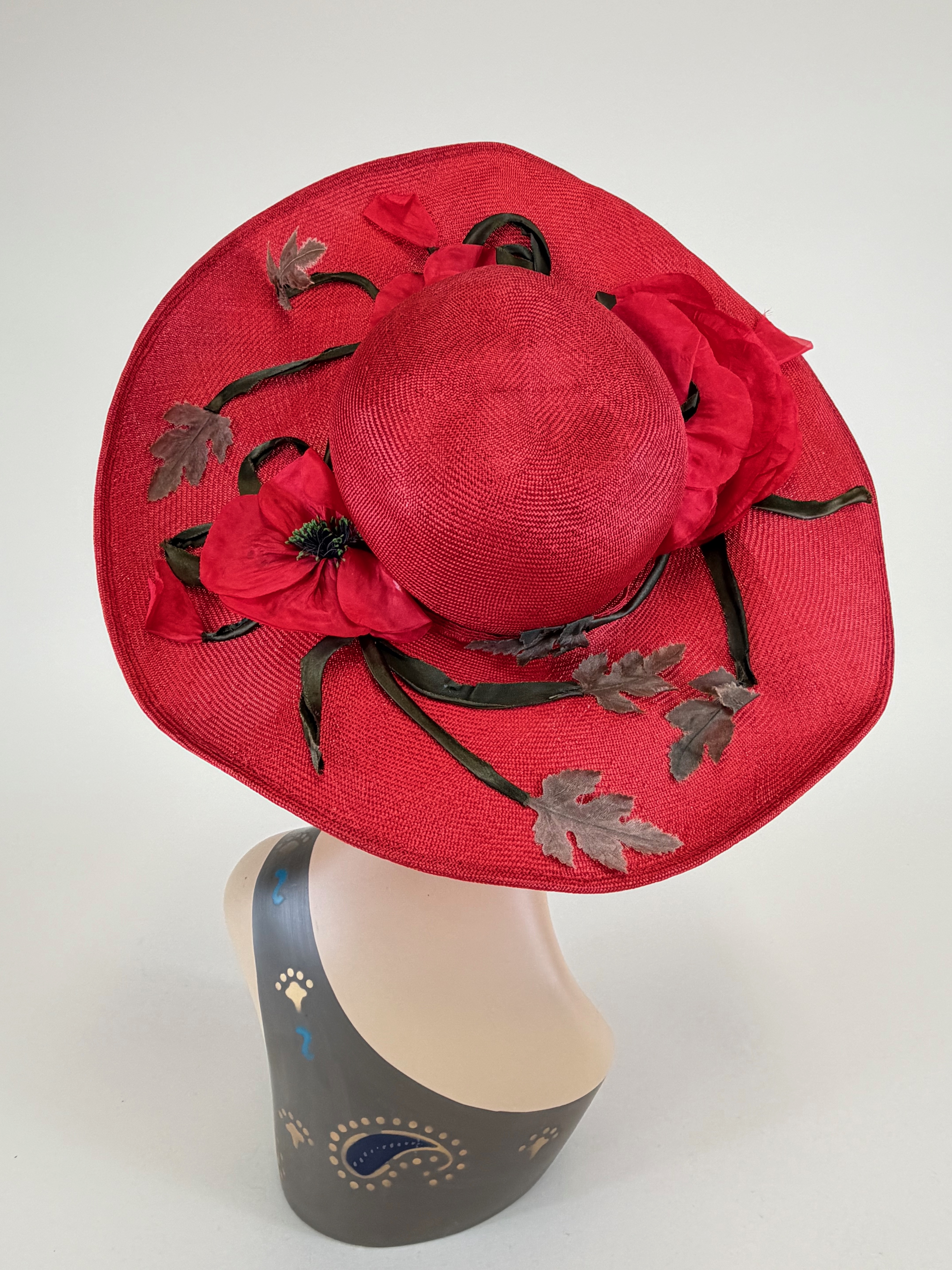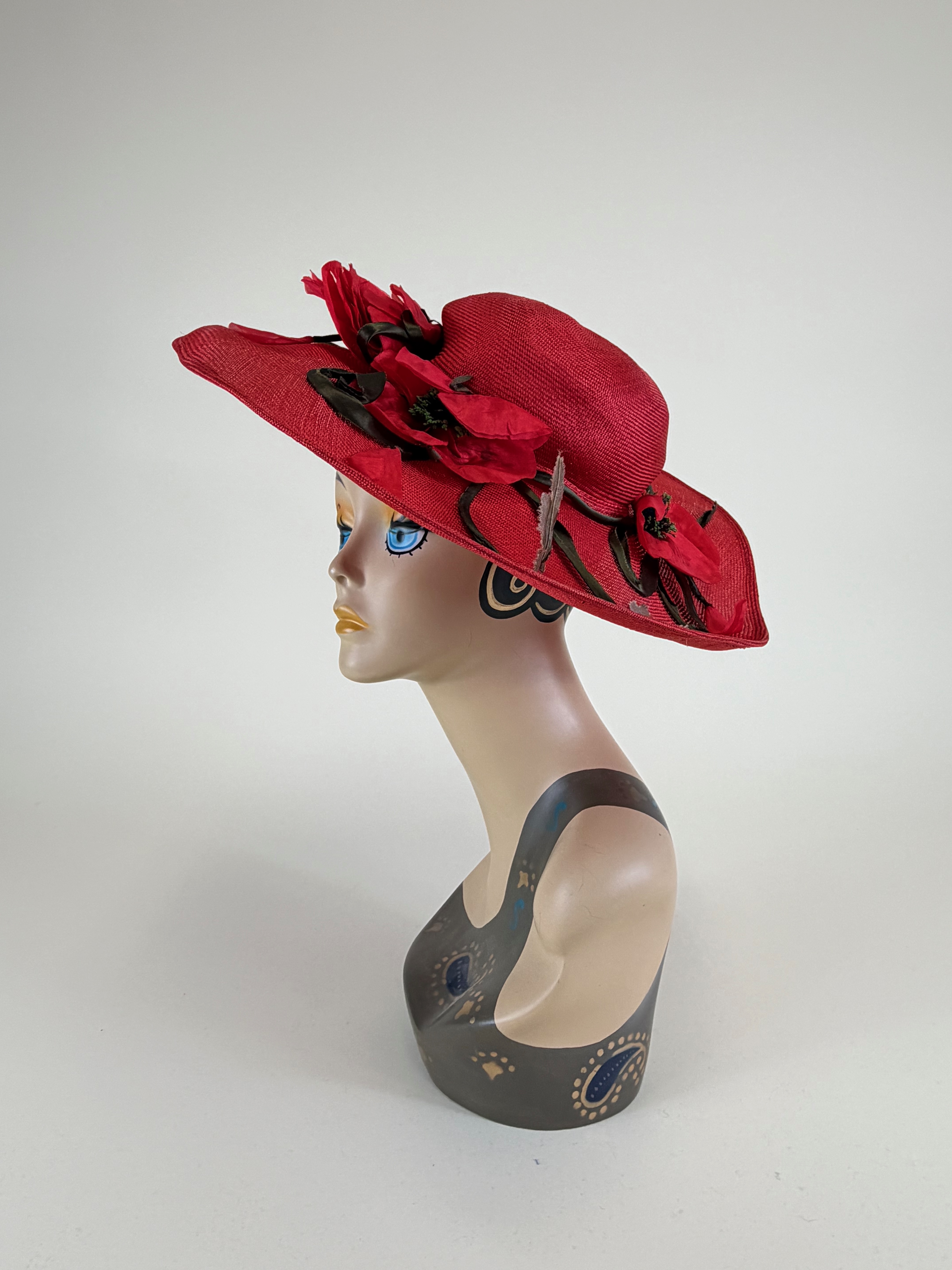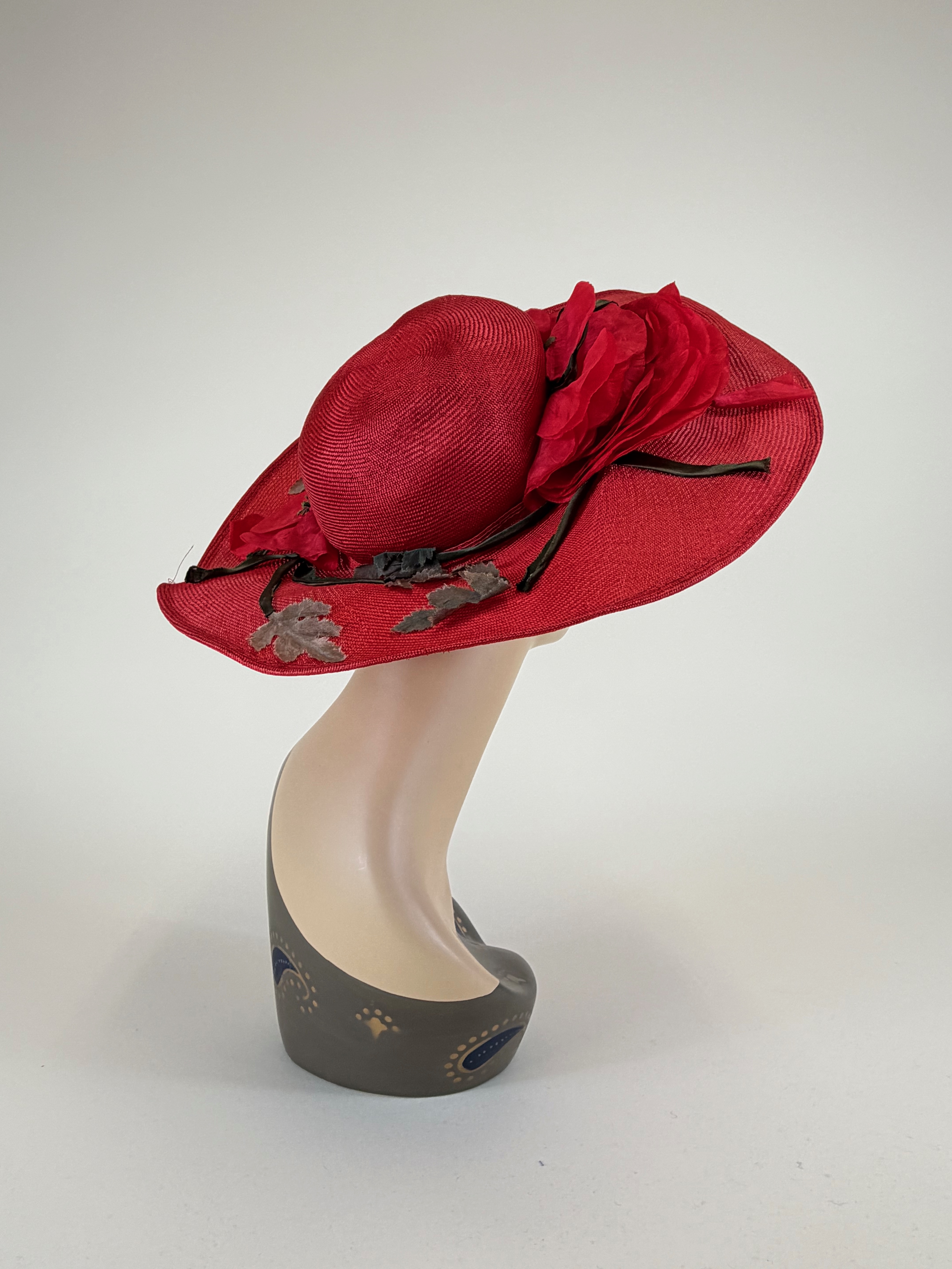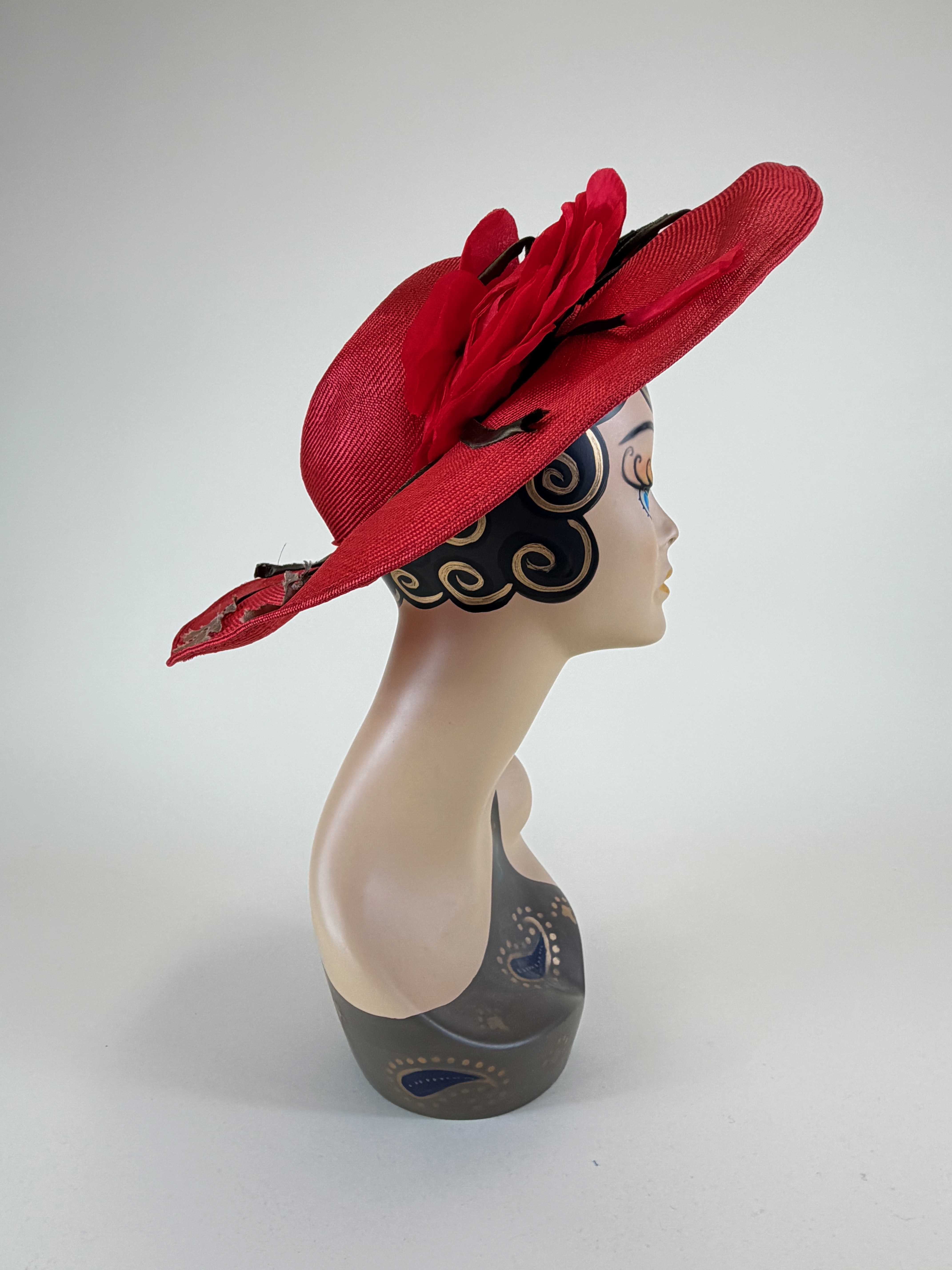 Vintage 1950s Frank Olive Sun Hat w/ Silk Flowers