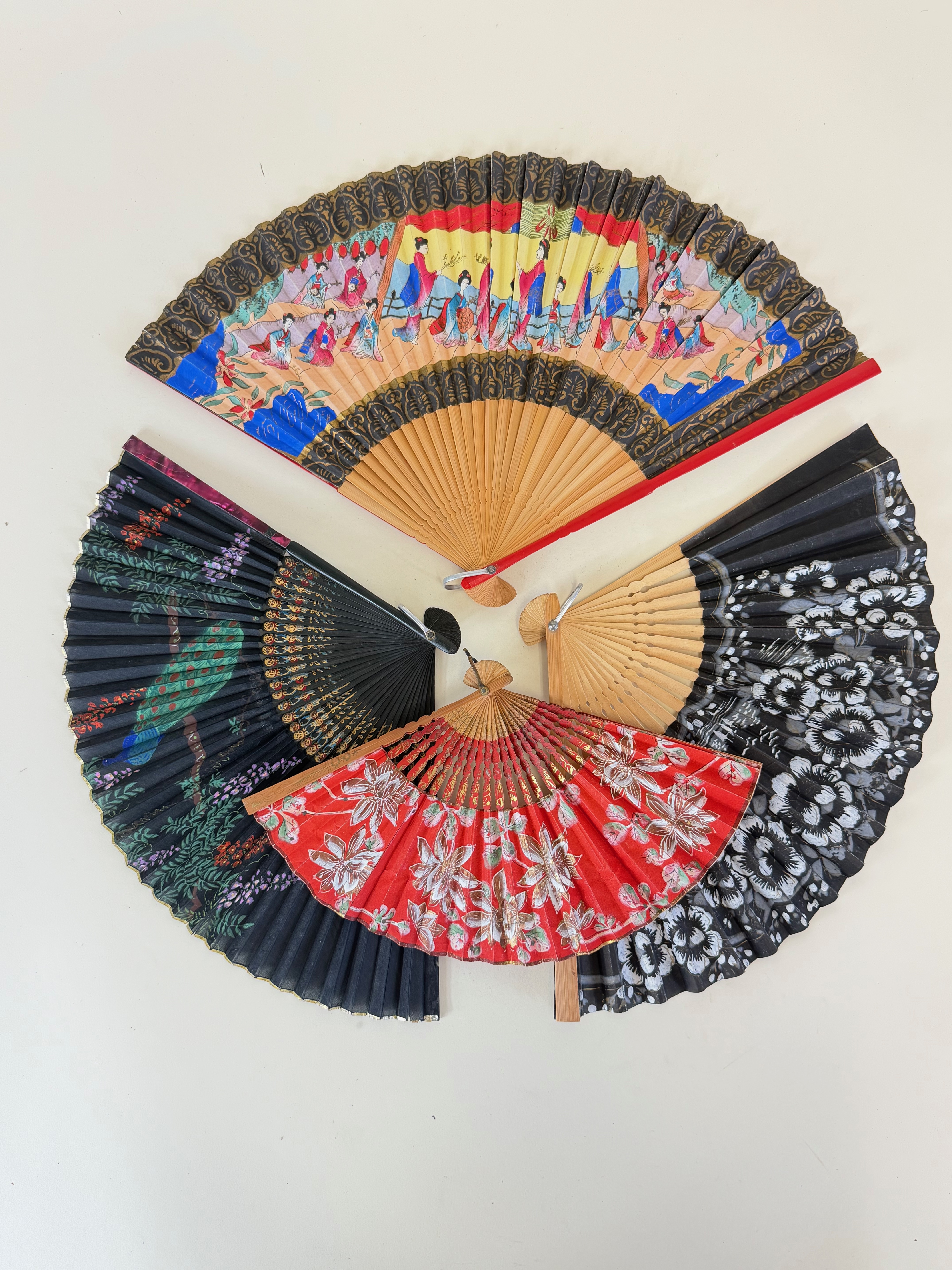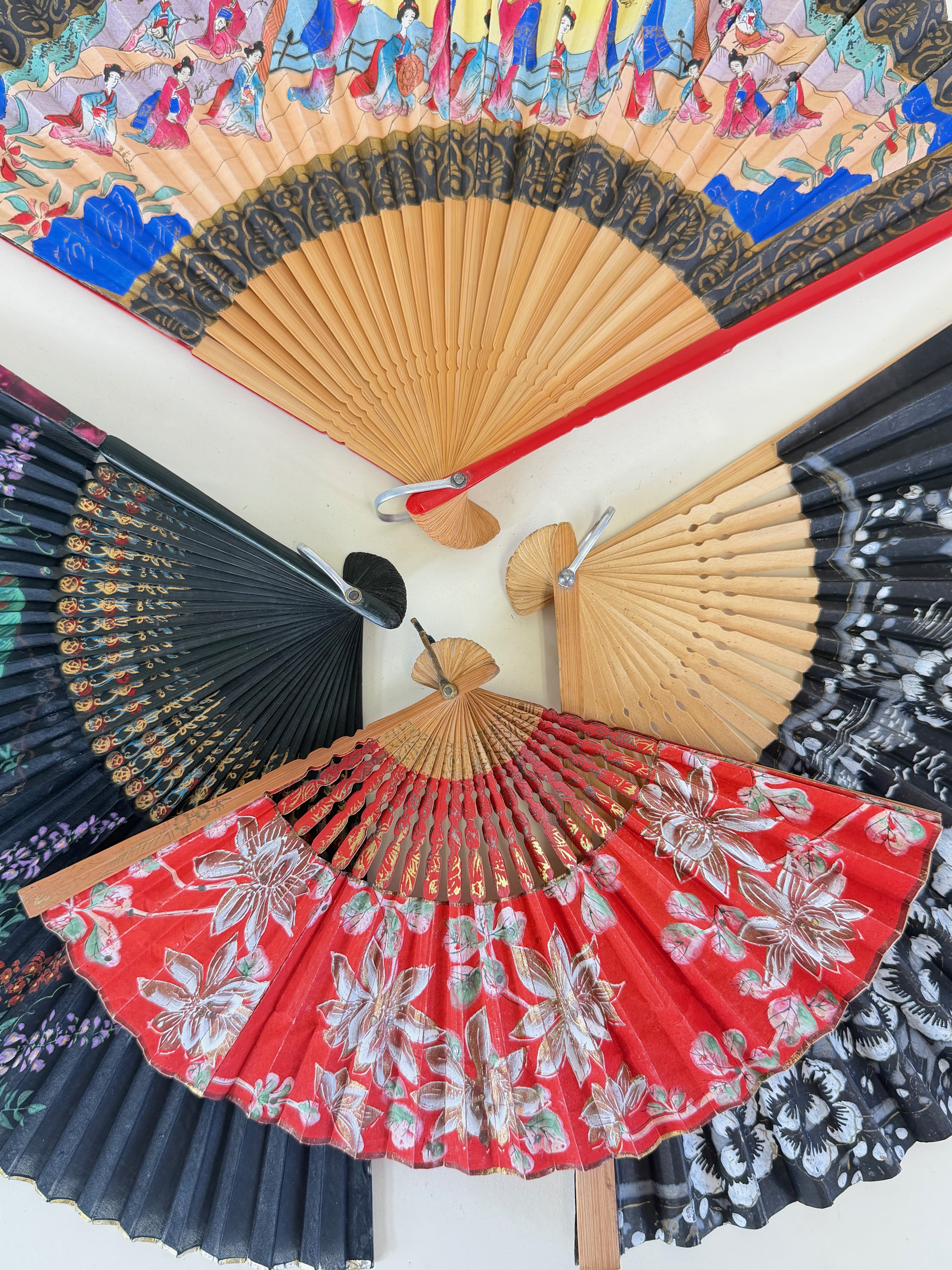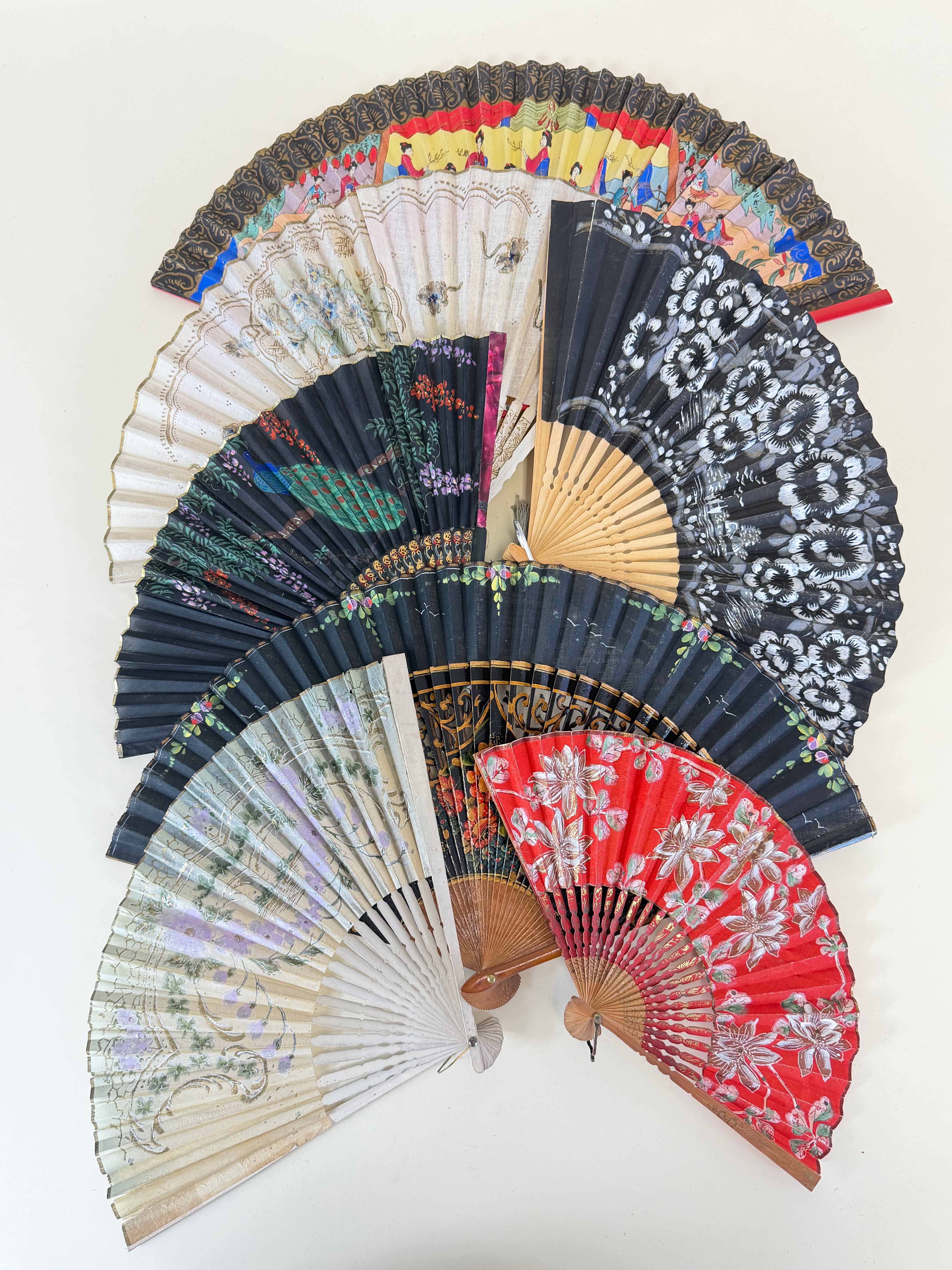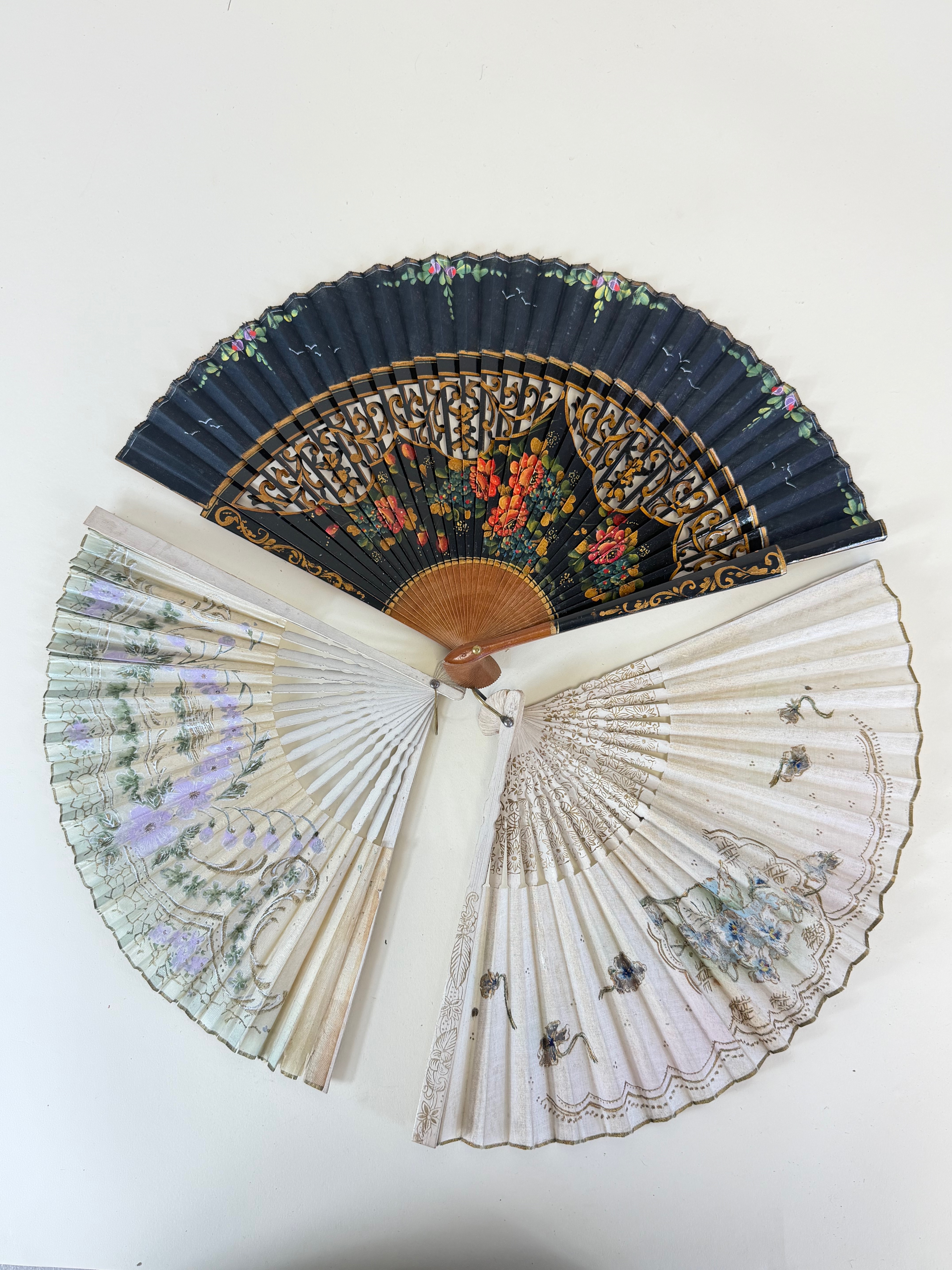 Lot of Seven Hand Painted Vintage Fans