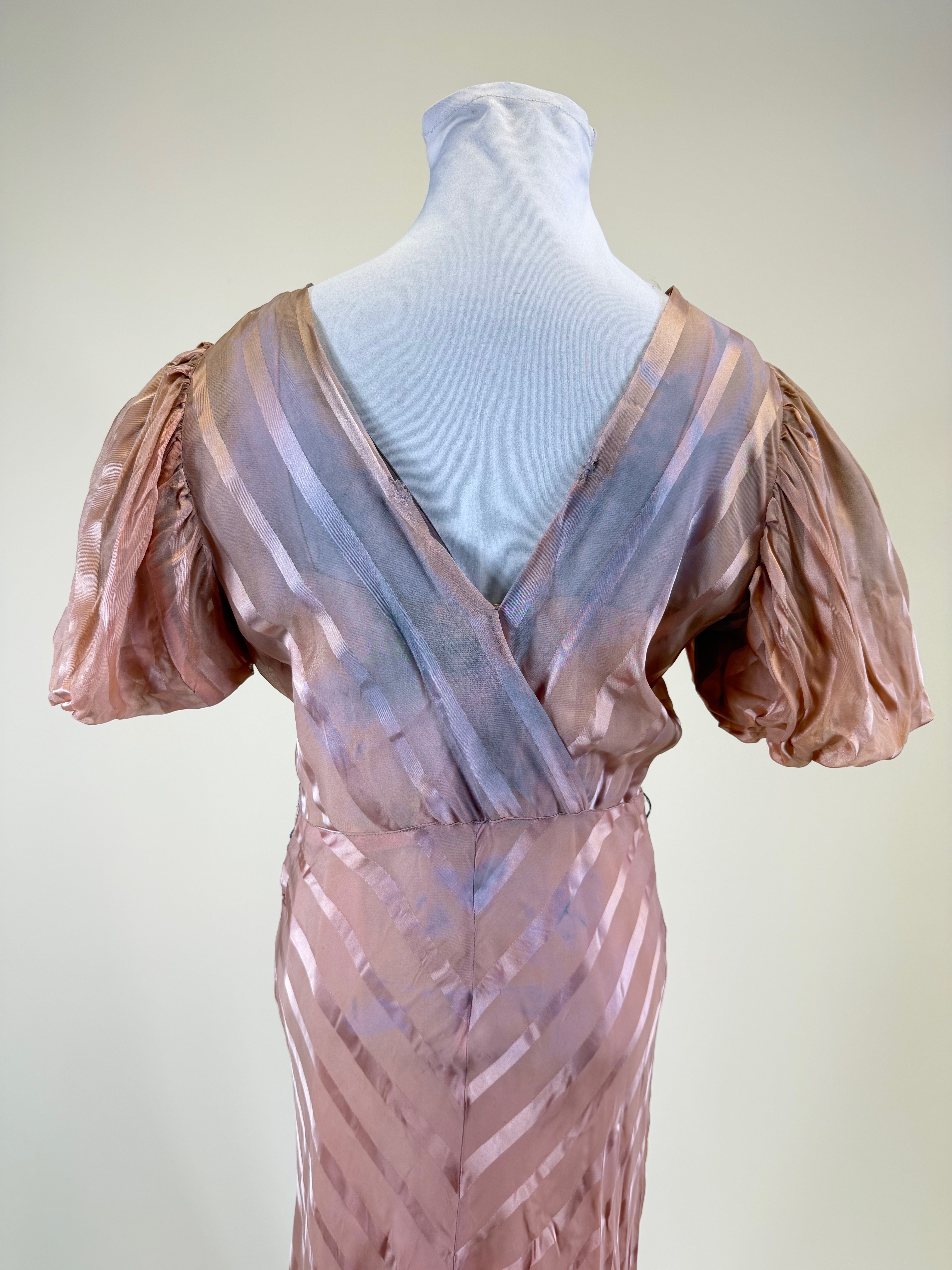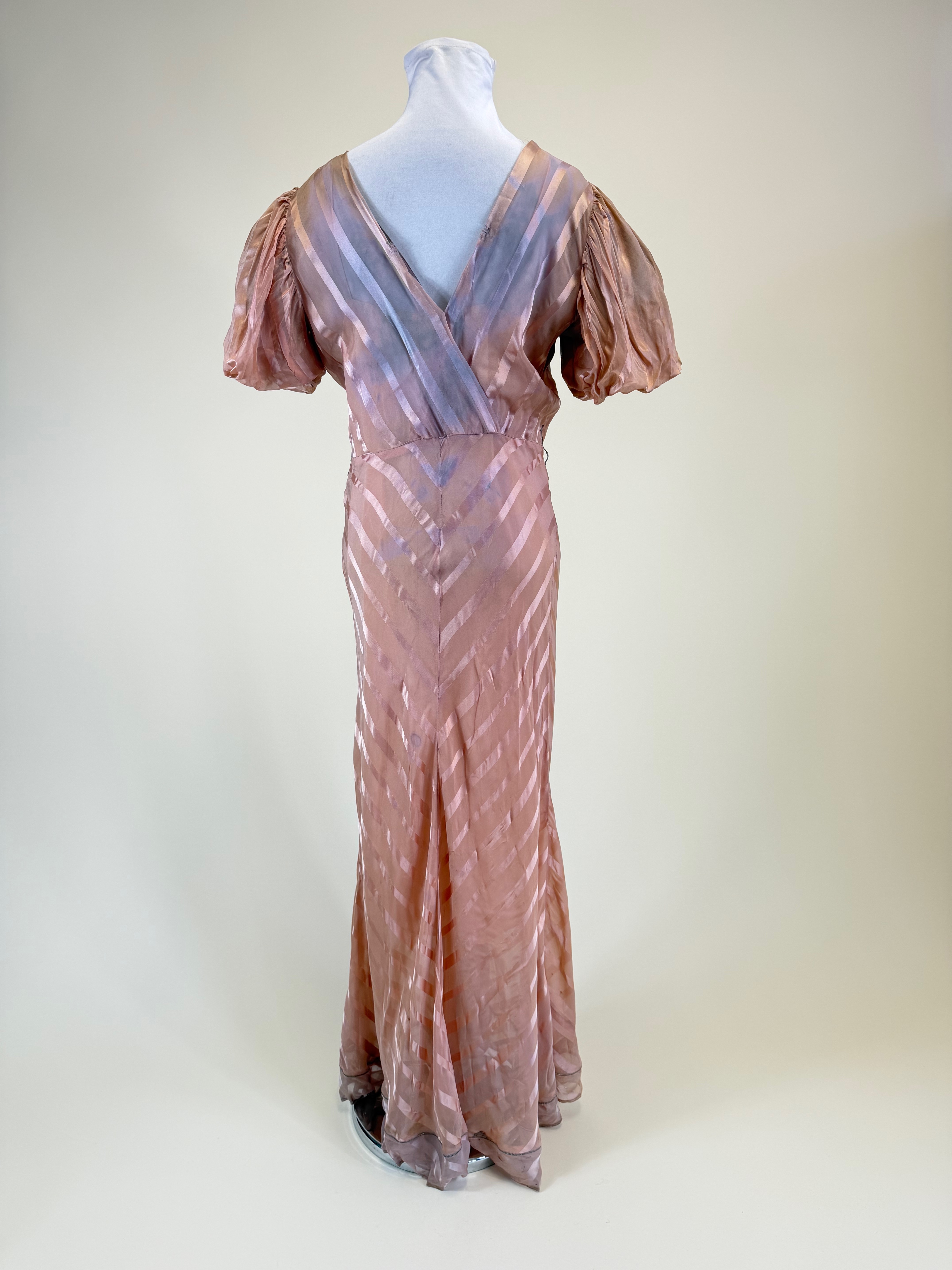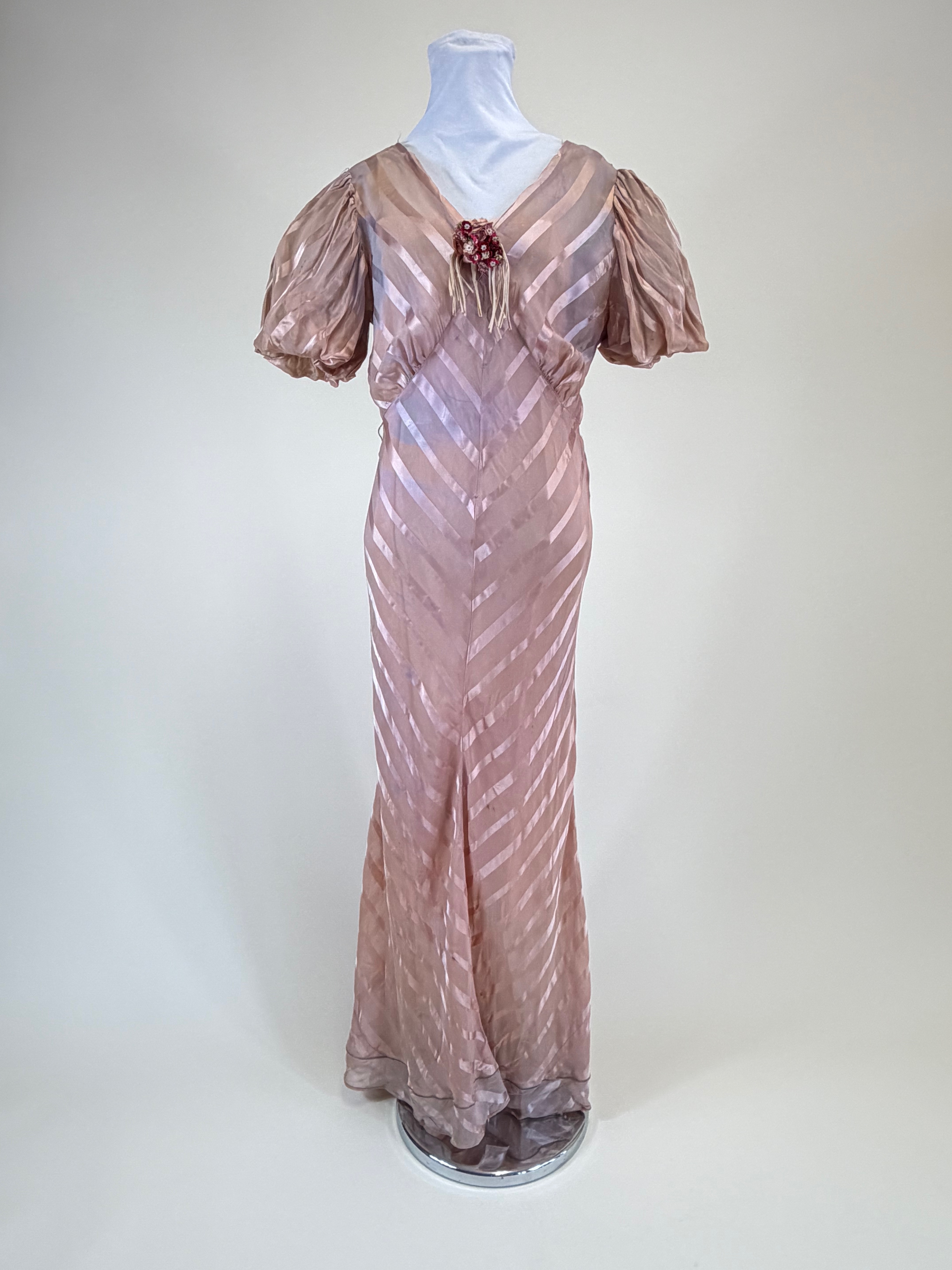 Vintage Late 1930s Satin Striped Evening Gown