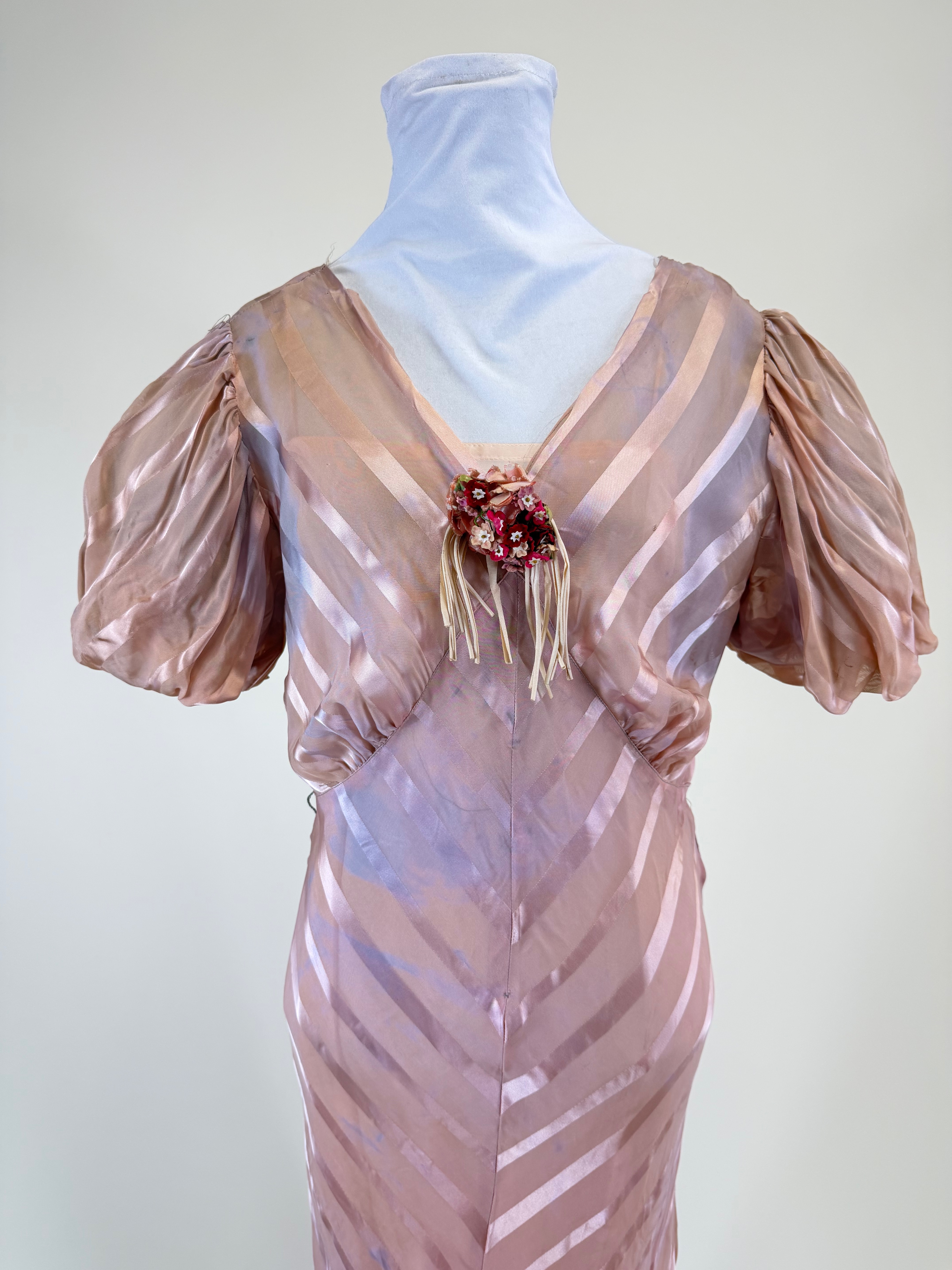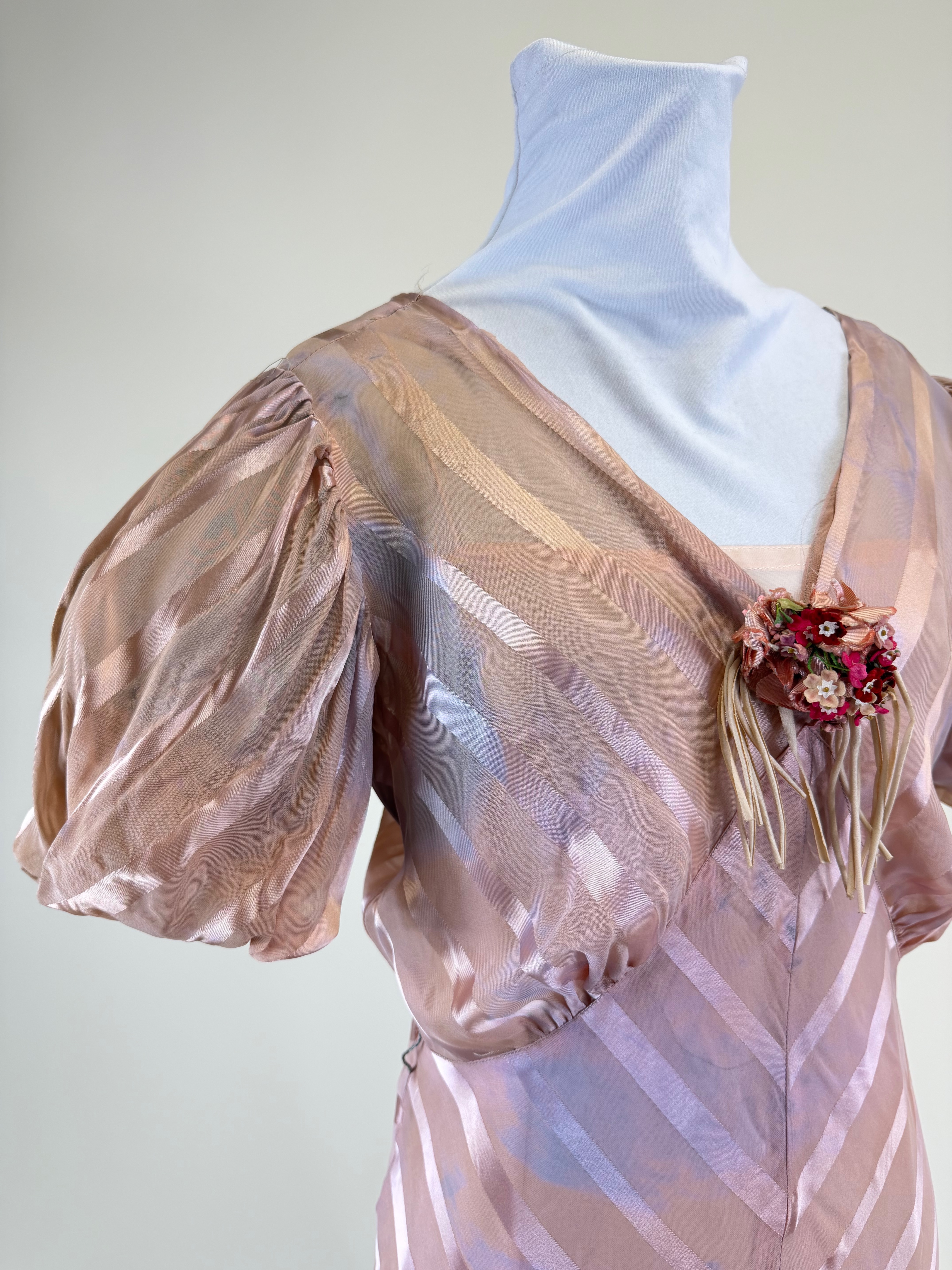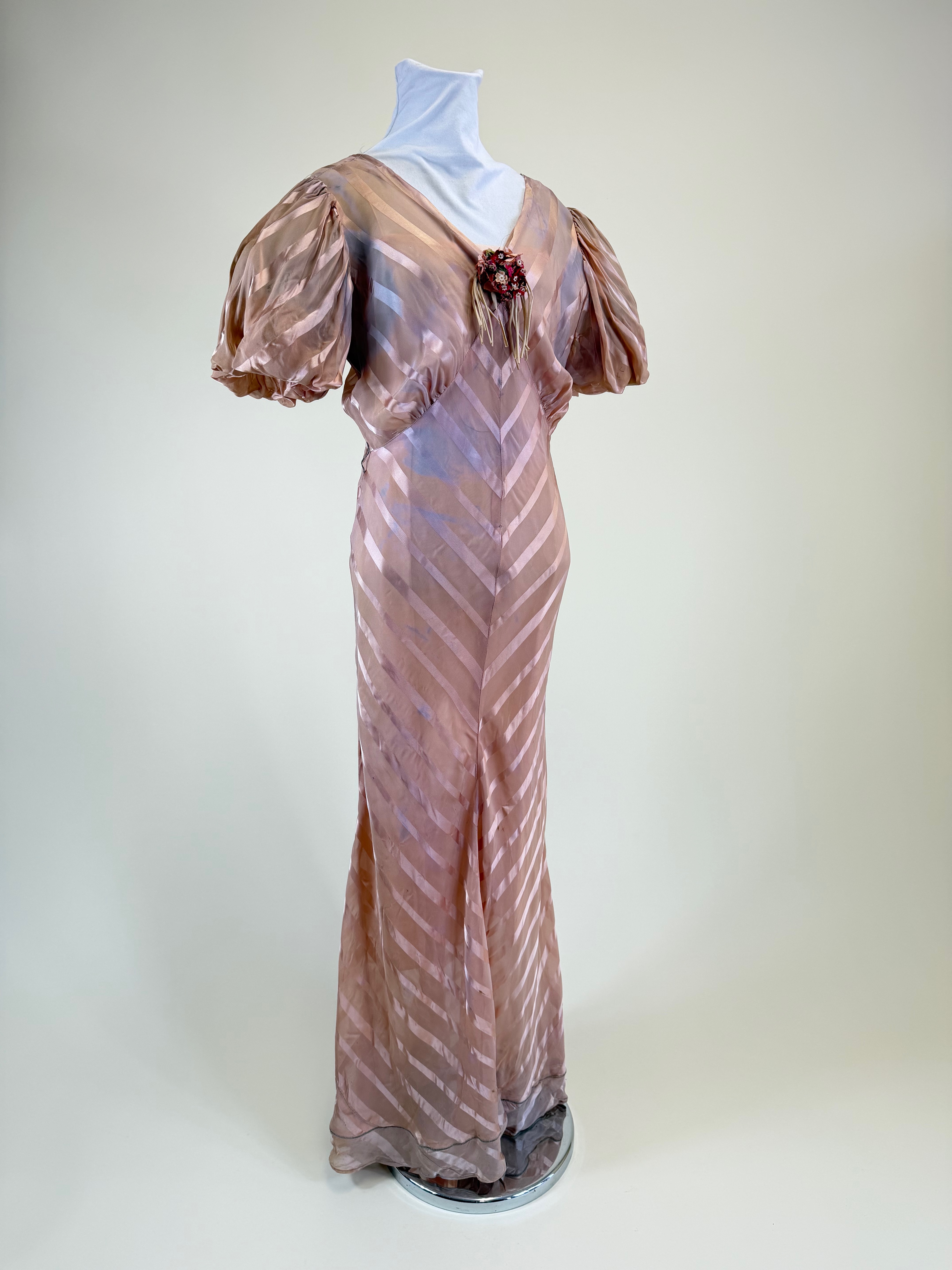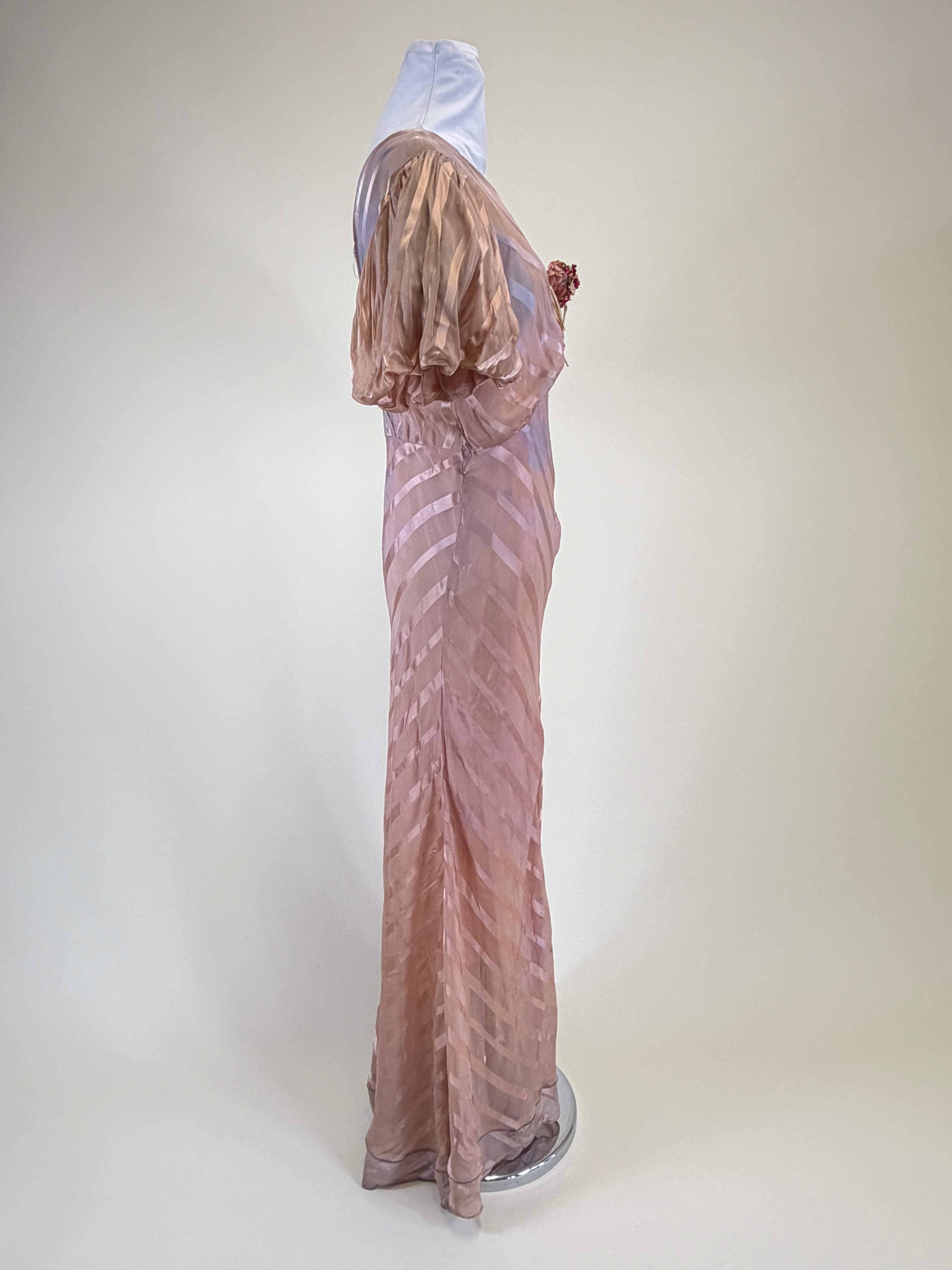 Vintage Late 1930s Satin Striped Evening Gown