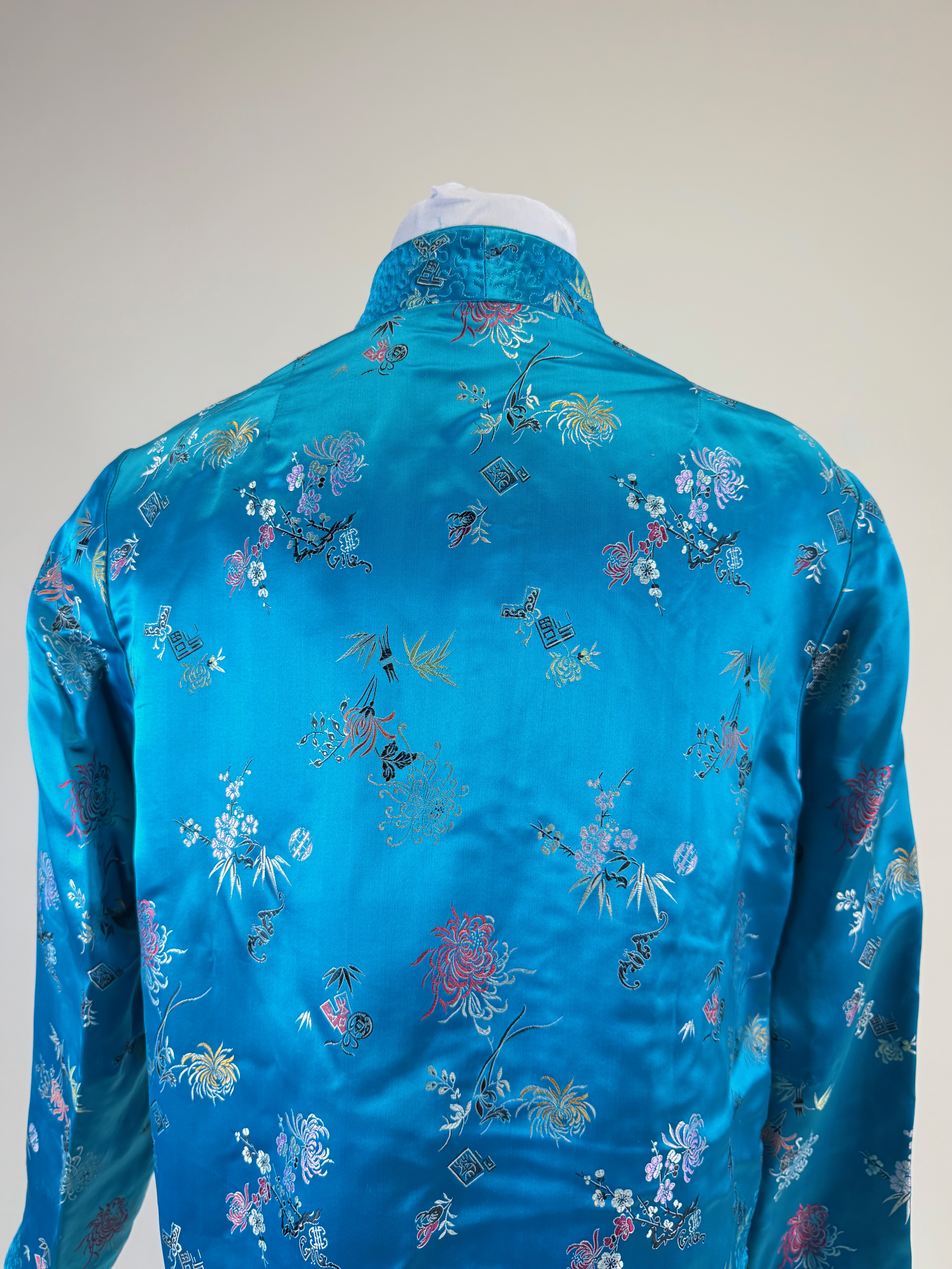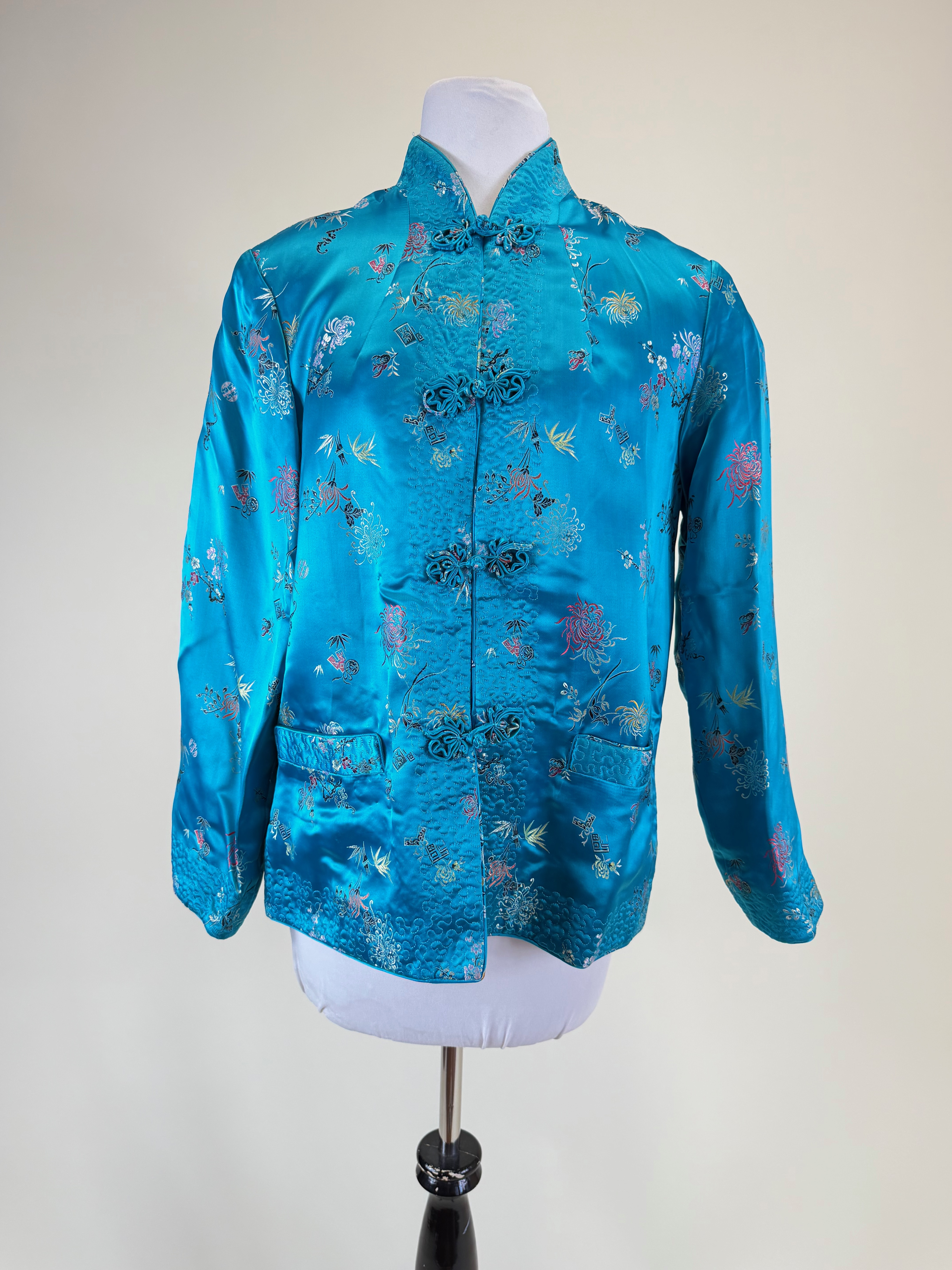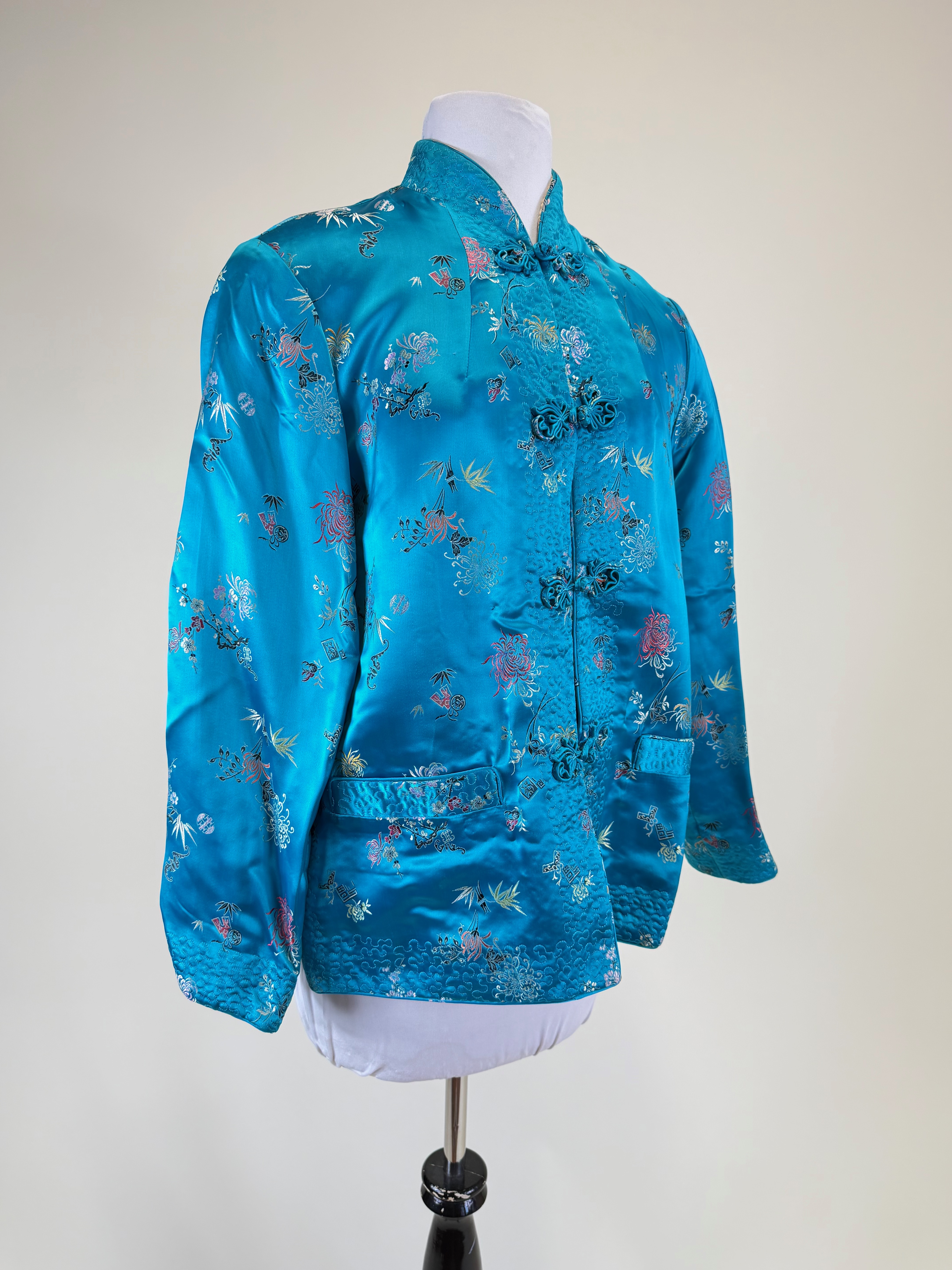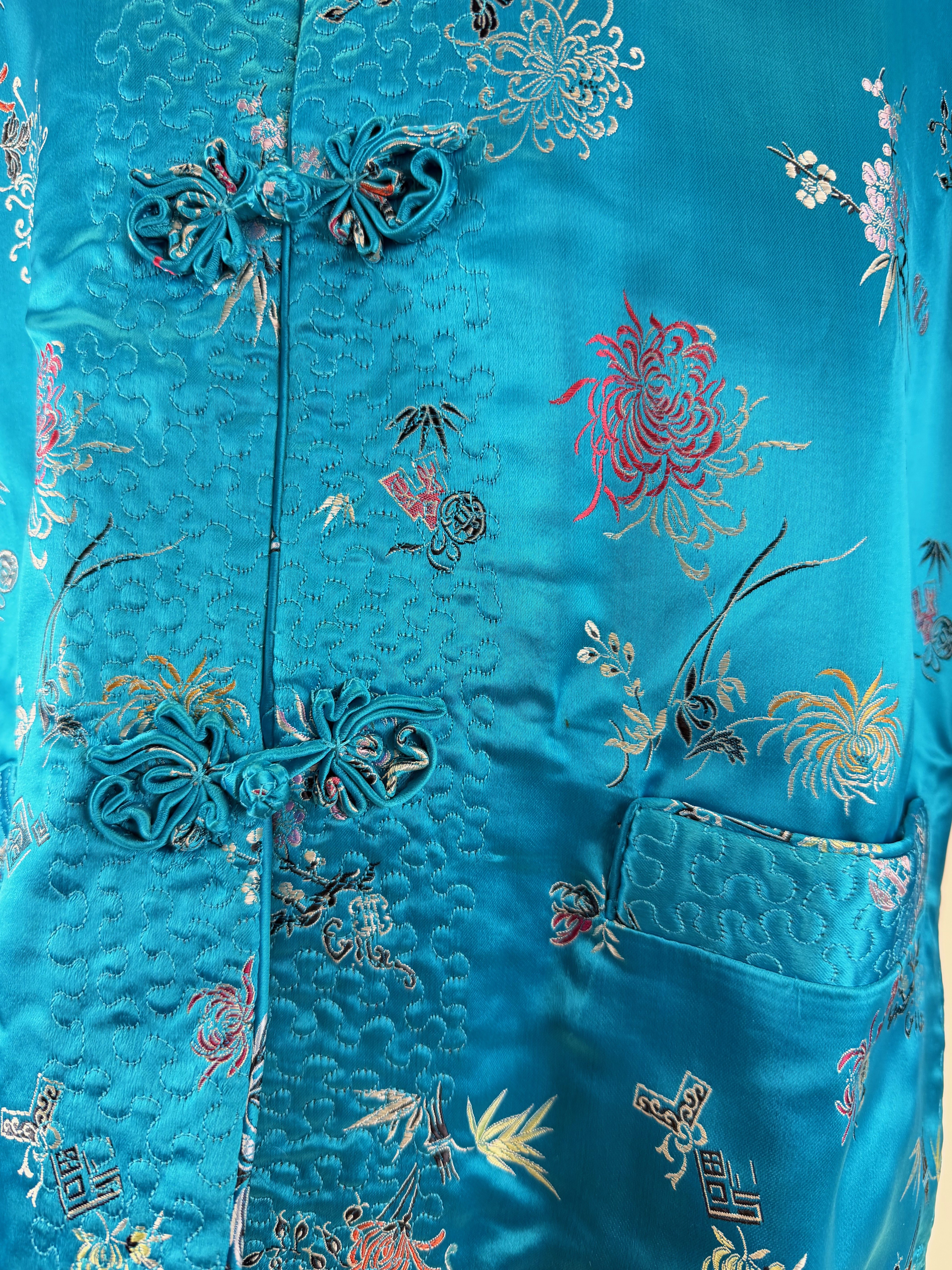 Vintage Patterned Silk Chinese Jacket w/ Couched Threadwork