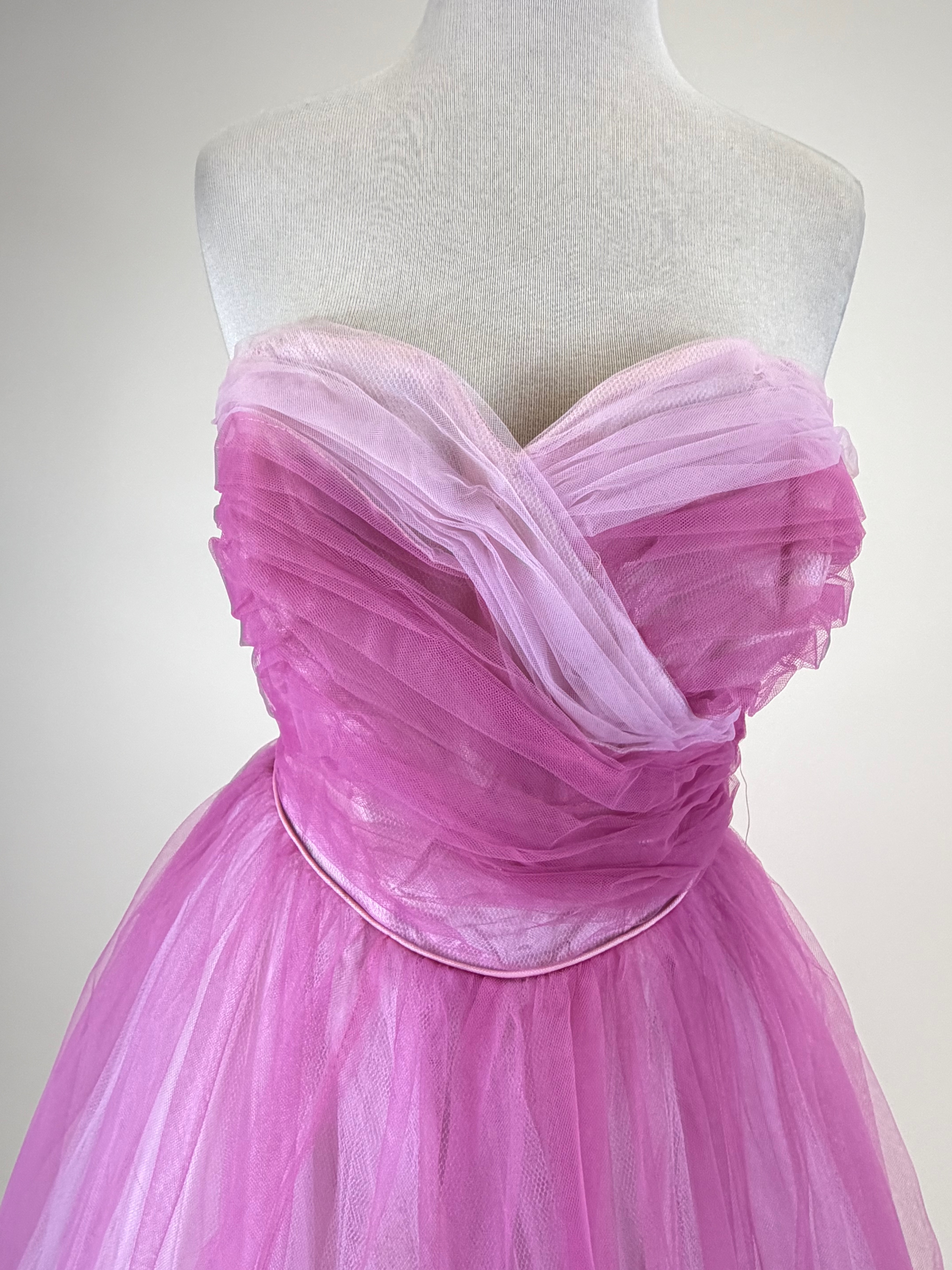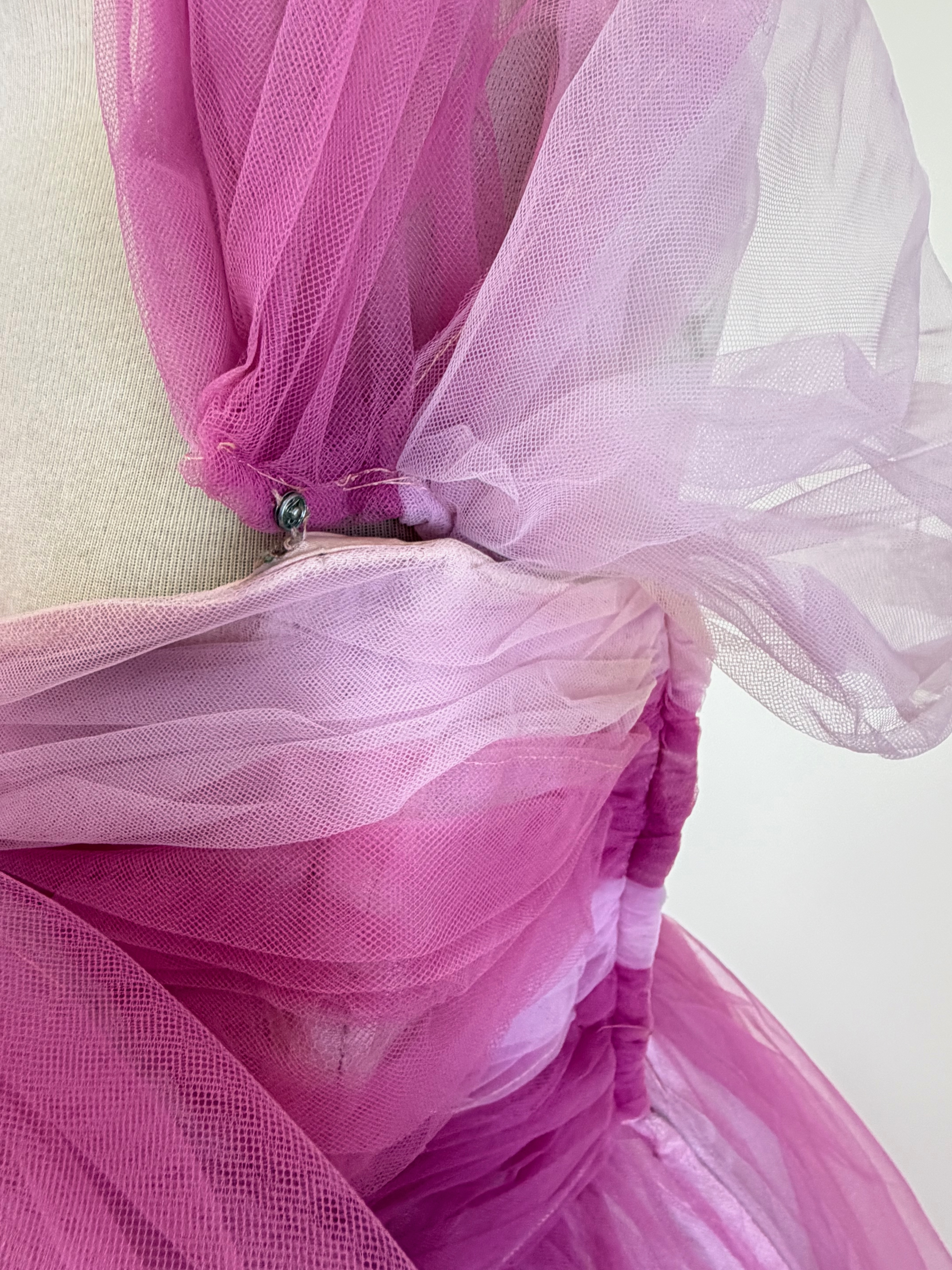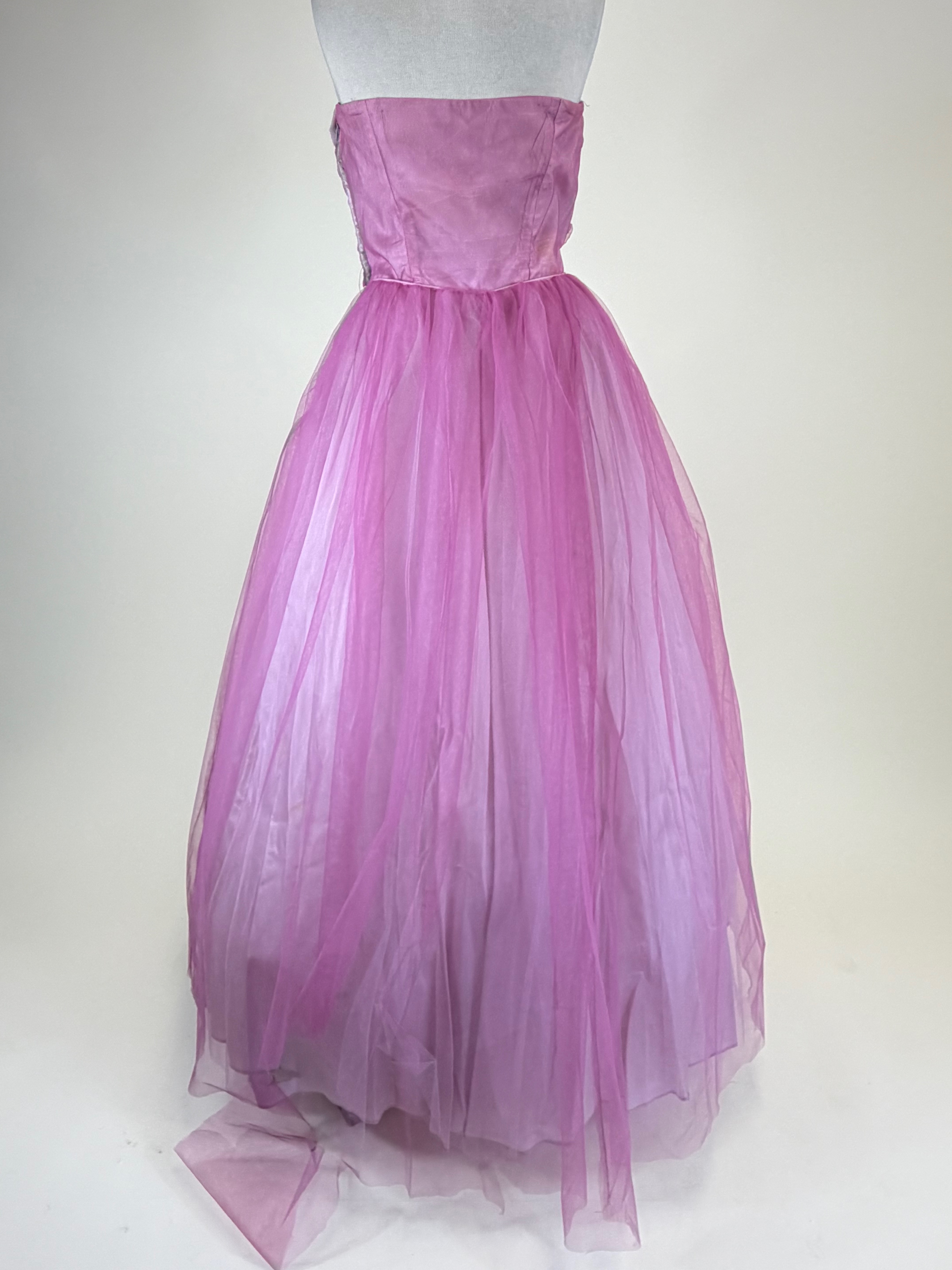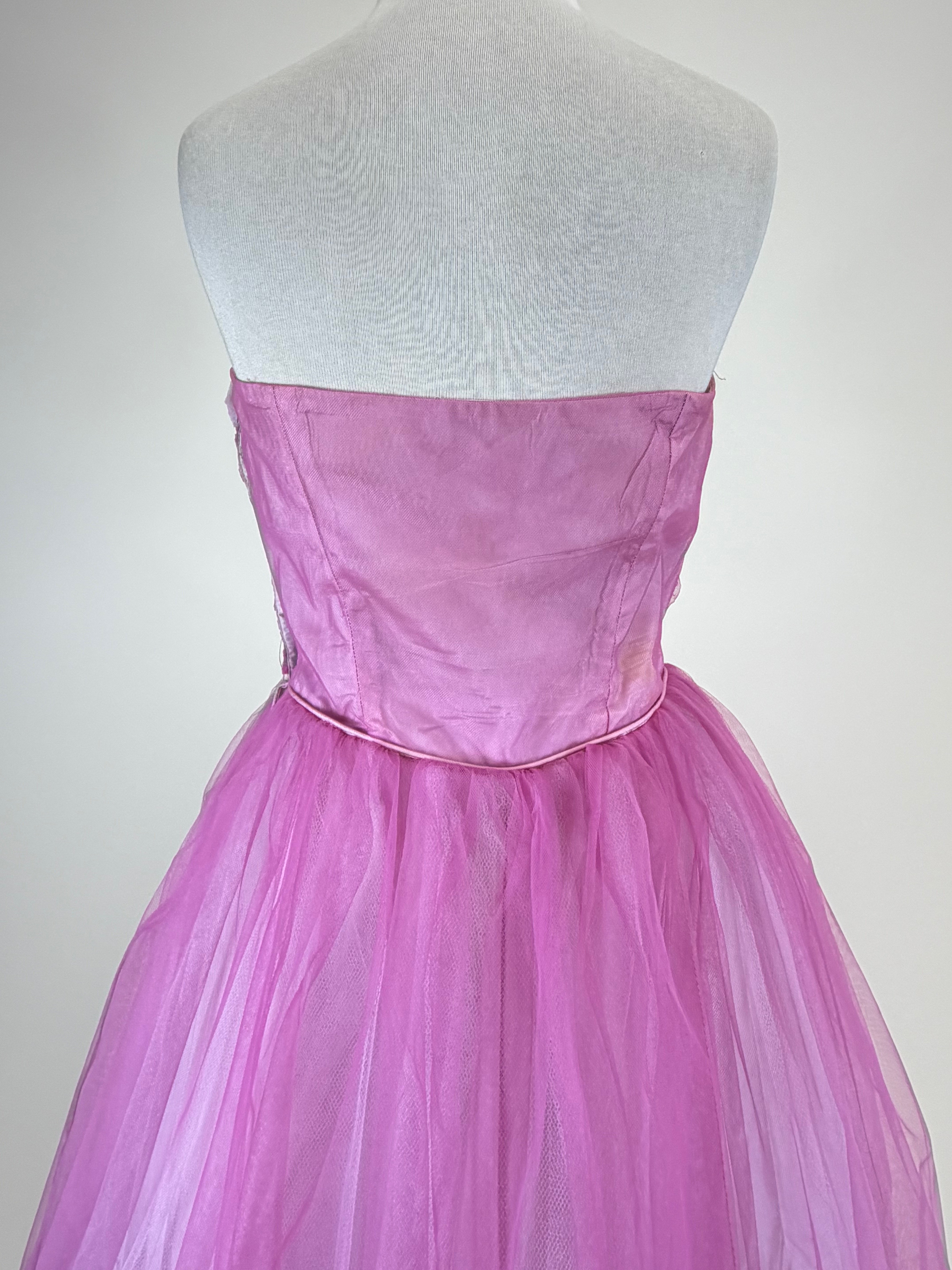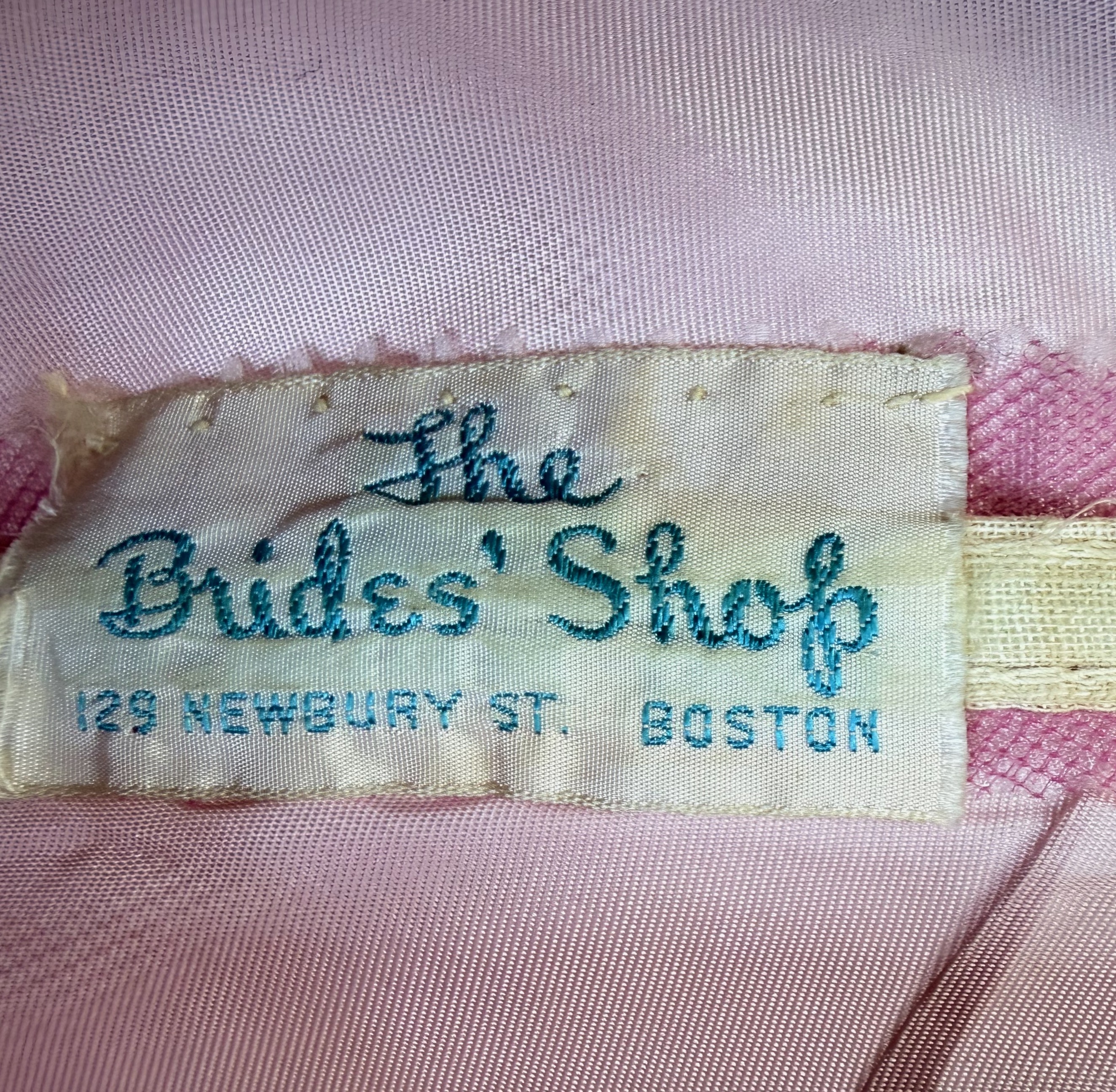 B 38″, W 29″, boning in bodice warped & some discoloration to waistband, see photos