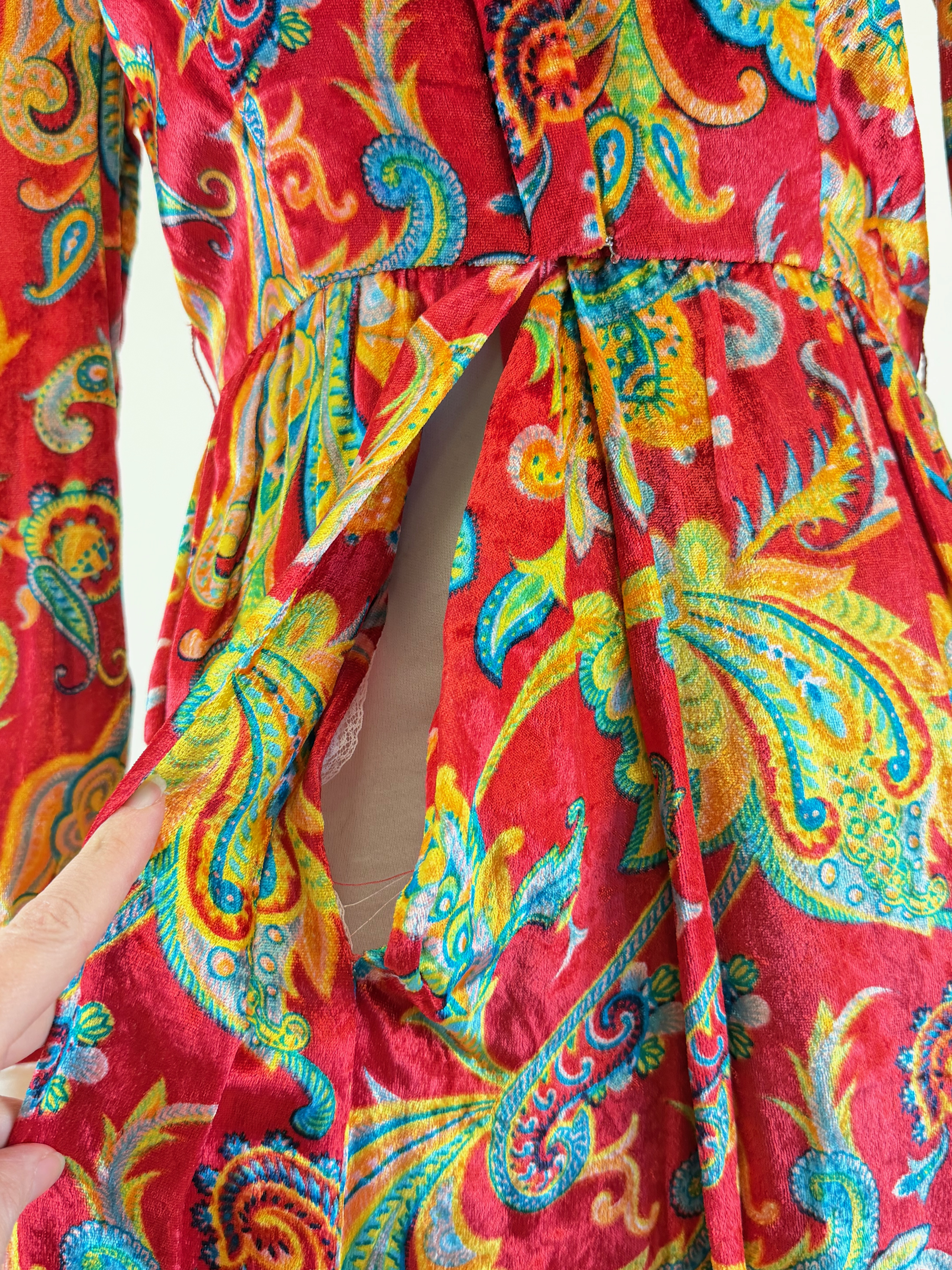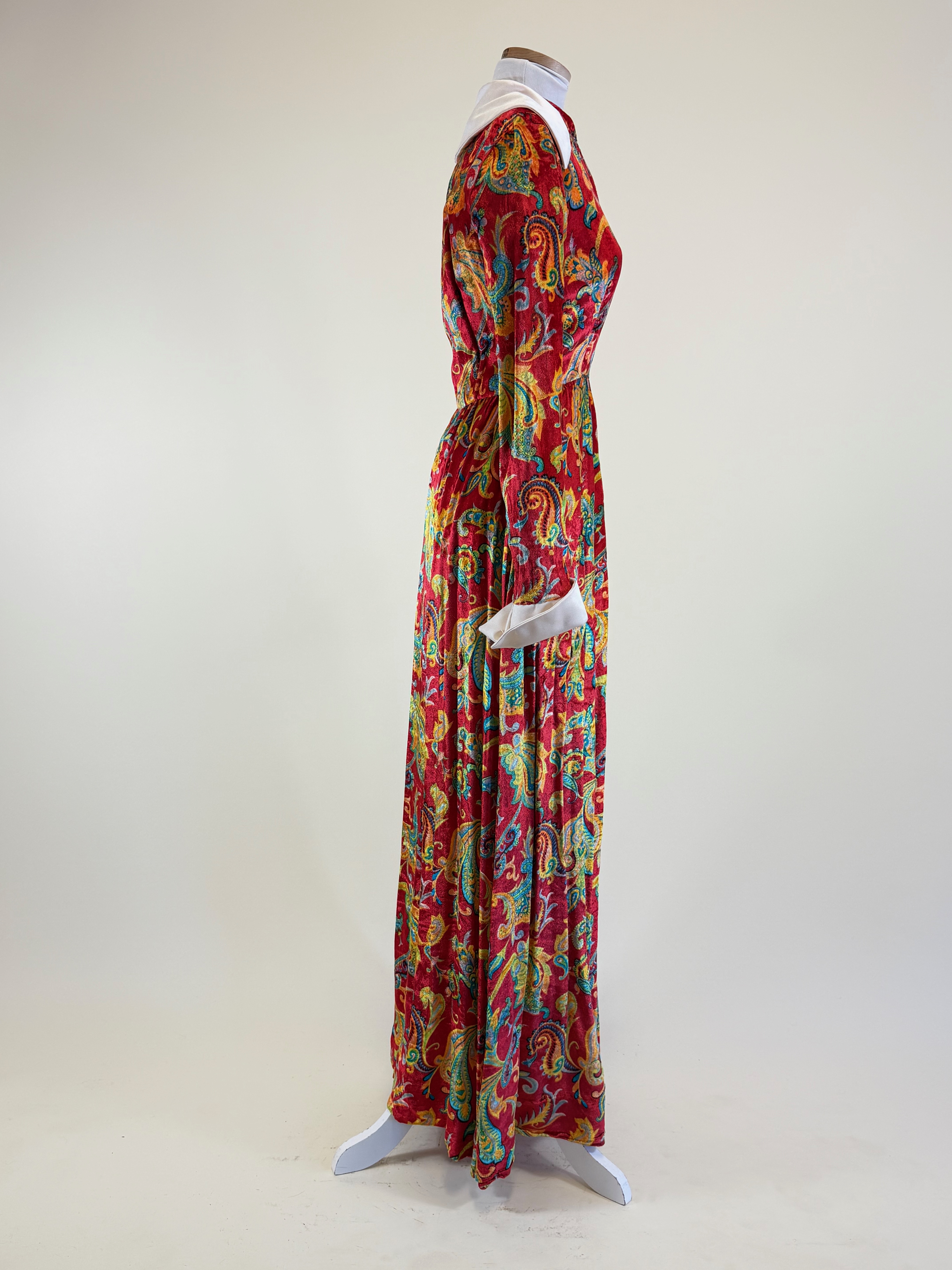 Vintage 1970s Paisley Velour Hostess Dress
