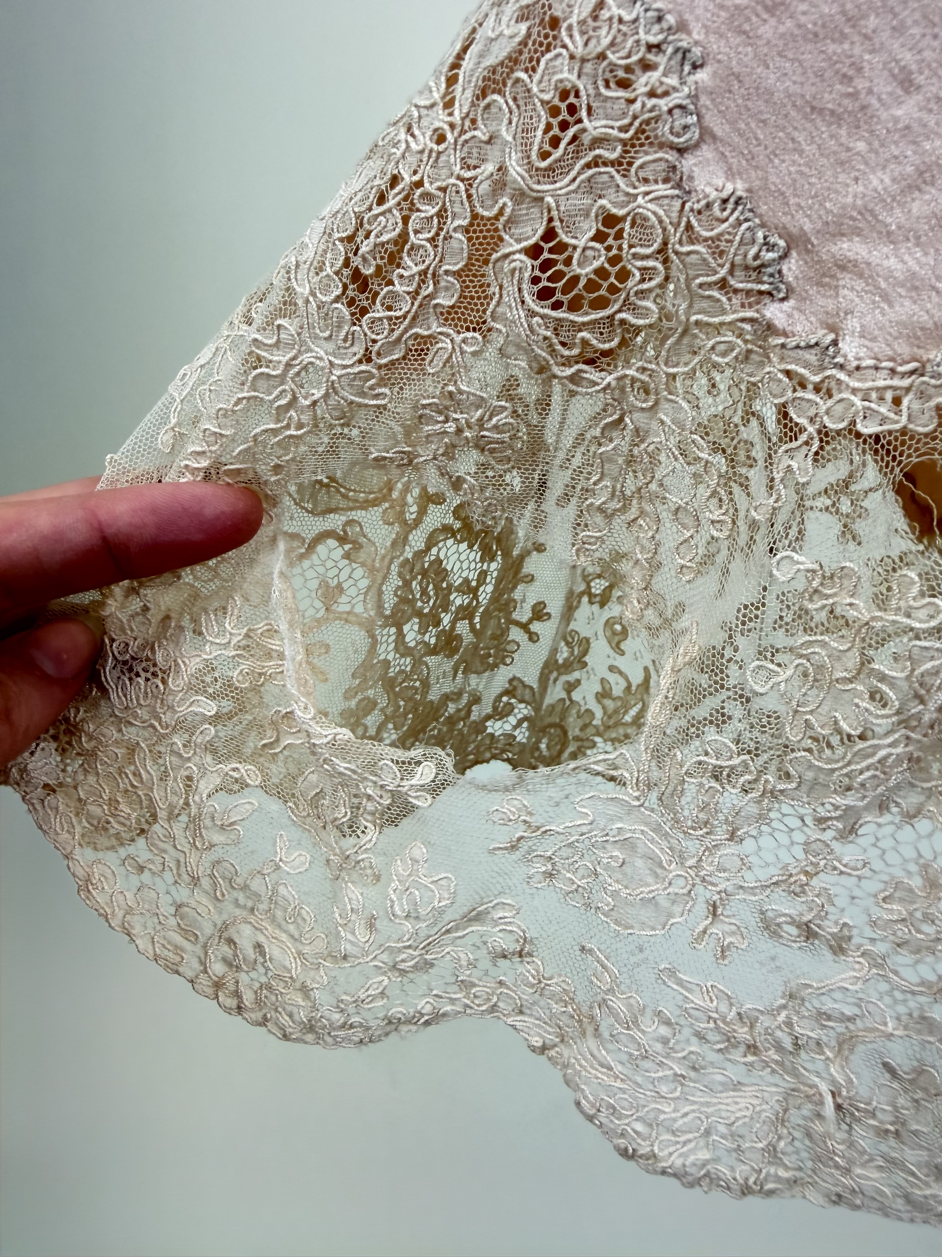 B 34″, W up to 36″, holes in lace, see photos