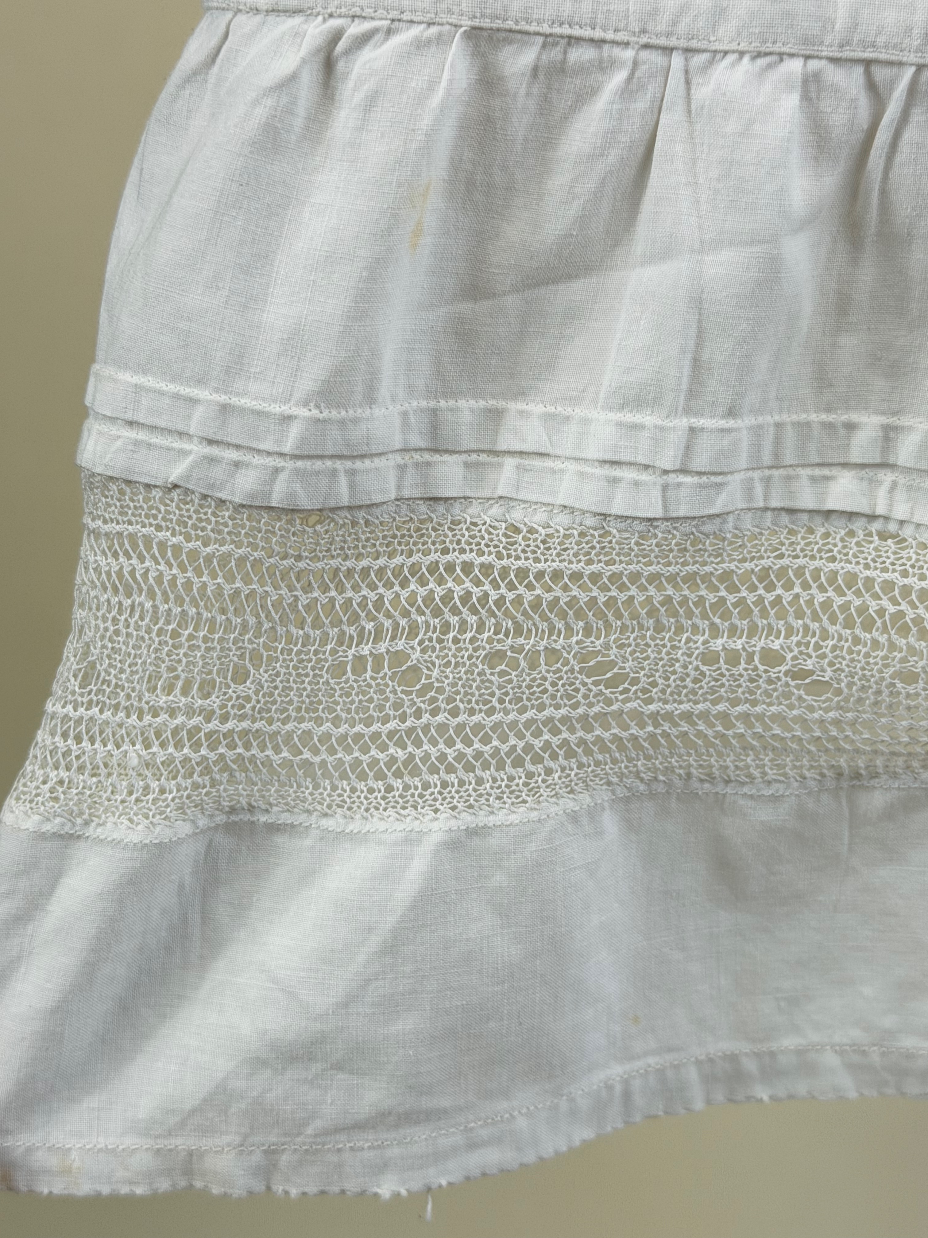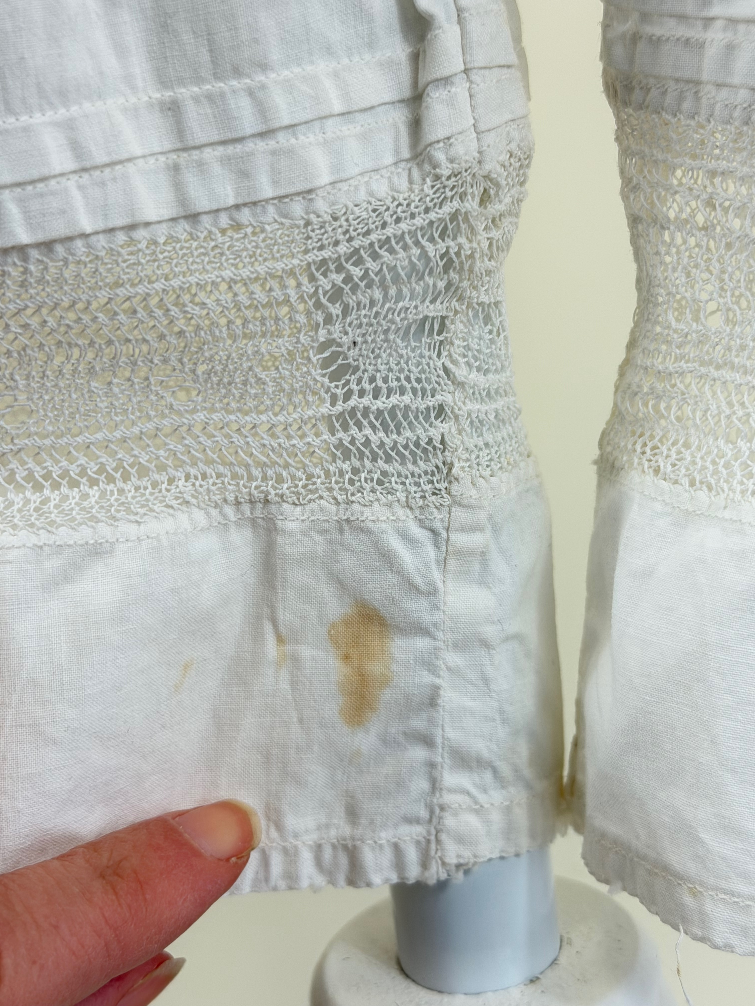 W 22″, few spot stains at cuff, see photos