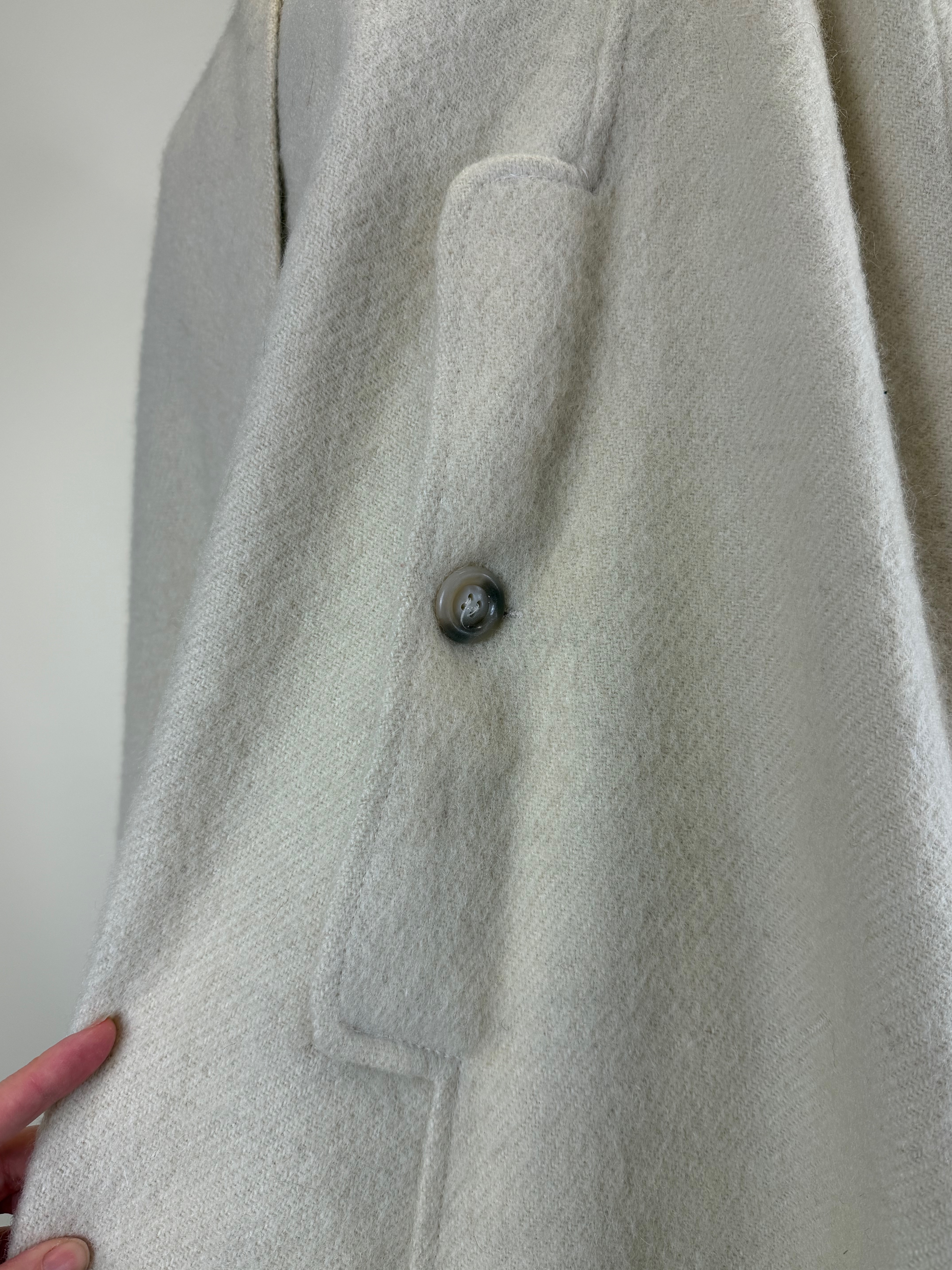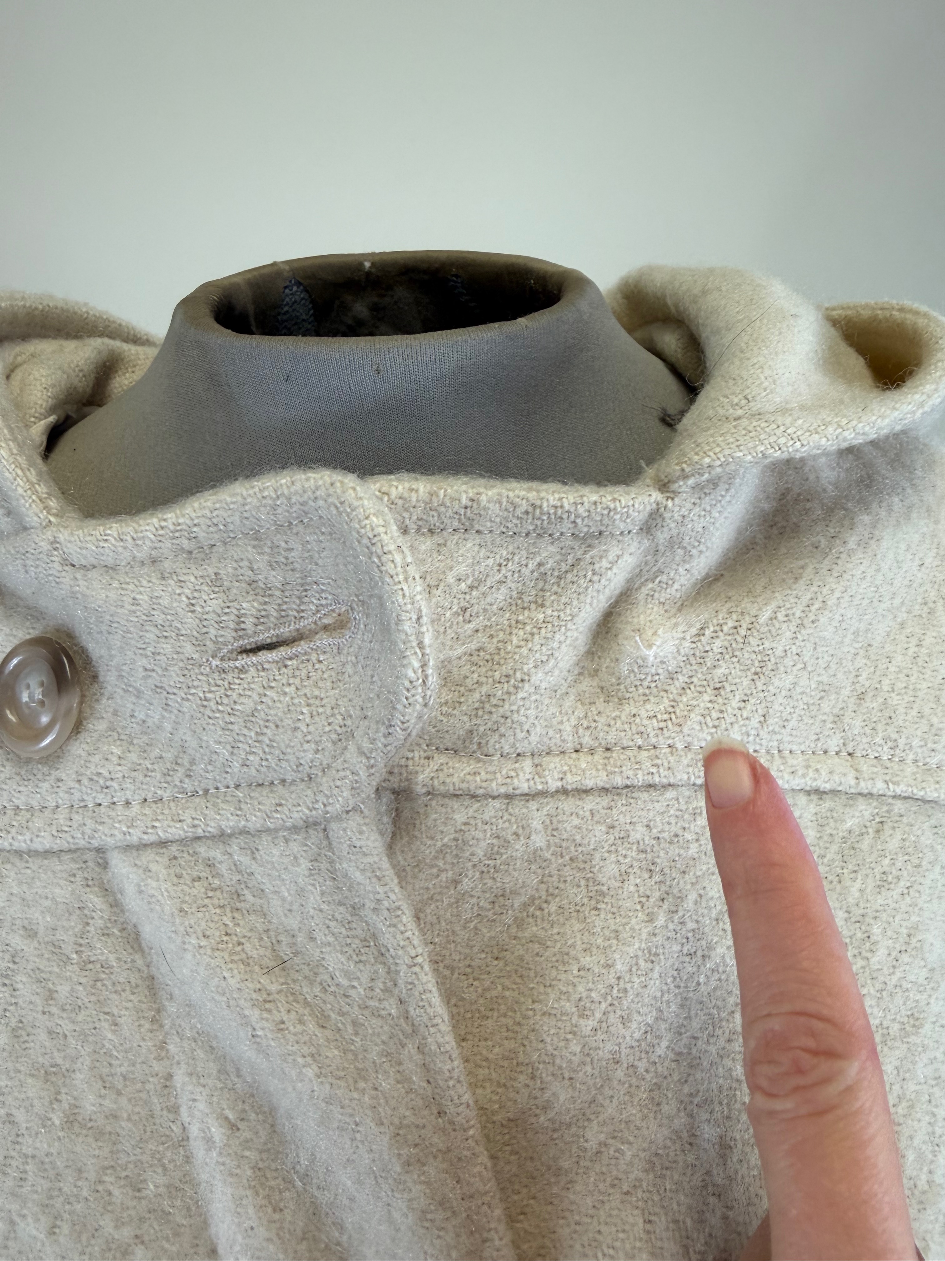 L 42″, missing 1 button at throat, few small snags, see photos